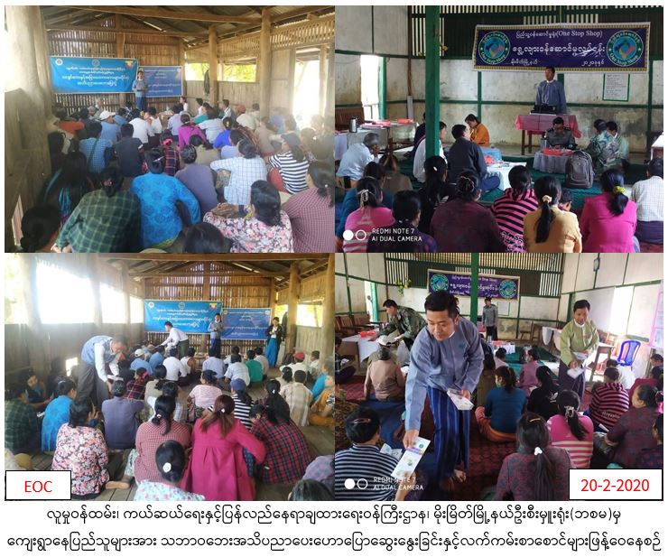 လူမှုဝန်ထမ်း၊ ကယ်ဆယ်ရေးနှင့်ပြန်လည်နေရာချထားရေးဝန်ကြီးဌာန၊ ဘေးအန္တရာယ်ဆိုင်ရာစီမံခန့်ခွဲမှုဦးစီးဌာန၊ မိုးမိတ်မြို့နယ်ဦးစီးမှူးရုံးမှ တာဝန်ရှိသူများသည် မိုးမိတ်မြို့နယ်၊ ပြည်သူ့ဝန်ဆောင်မှုရုံး(One Stop S့့့့hop) ဖြင့်ပူးပေါင်း၍ (၂၀-၂-၂၀၂၀) ရက်နေ့၊ နံနက်(၀၉:၃၀)နာရီမှ (၁၁:၃၀)အထိ လယ်ကြီးကျေးရွာအုပ်စု၊ လယ်ကြီးကျေးရွာနှင့် မွန်းလွဲ (၁၃:၀၀)နာရီမှ (၁၄:၀၀)နာရီအထိ လူမှုဝန်ထမ်းဦးစီးဌာနနှင့် ပူးပေါင်း၍ ပသင်ကျေးရွာအုပ်စု၊ ပသင်ကျေးရွာတို့ရှိ ကျေးရွာနေပြည်သူလူထုများအား ဝန်ကြီးဌာန၏ မူဝါဒများ၊ ဦးစီးဌာန၏ လုပ်ငန်းတာဝန်များ၊ ဘေးသင့်ပြည်သူများအတွက်ထောက်ပံ့မှုနှုန်းထားများ၊ ၎င်းဒေသတွင်ဖြစ်နိုင်ခြေရှိသော ငလျင်ဘေးနှင့် အခြားသောသဘာဝဘေးအန္တရာယ်များ မဖြစ်ပွားမီ၊ ဖြစ်ပွားနေစဉ်၊ ဖြစ်ပွားပြီးနောက်ပိုင်းတွင် ဆောင်ရန်၊ရှောင်ရန်များနှင့် စပ်လျဉ်း၍အသိပညာပေးဟောပြောပွဲကျင်းပခဲ့ရာ လယ်ကြီးကျေးရွာတွင် တက်ရောက်သူဦးရေ(၁၀၀)ဦးခန့်နှင့် ပသင်ကျေးရွာတွင် (၁၅၀)ဦးခန့်တက်ရောက်ခဲ့ပါကြောင်း သတင်းရရှိပါသည်။