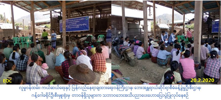 လူမှုဝန်ထမ်း၊ ကယ်ဆယ်ရေးနှင့် ပြန်လည်နေရာချထားရေးဝန်ကြီးဌာန၊ ဘေးအန္တရာယ်ဆိုင်ရာစီမံခန့်ခွဲမှုဦးစီးဌာန၊ ဂန့်ဂေါခရိုင်ဦးစီးမှူးရုံးမှ တာဝန်ရှိသူများသည် (၂၀-၂-၂၀၂၀) ရက်နေ့ (၁၃:၀၀)နာရီမှ (၁၄:၃၀) နာရီအထိ မီးသတ်ဦးစီးဌာန၊ စားသုံးသူရေးရာဦးစီးဌာနတို့မှ တာဝန်ရှိသူများနှင့် ပူးပေါင်း၍ ဂန့်ဂေါခရိုင်၊ ဂန့်ဂေါမြို့နယ်၊ ကွမ်းဇဲကျေးရွာအုပ်ချုပ်ရေးမှူးရုံး တွင် ကျေးရွာနေပြည်သူလူထု (၁၂၅) ဦးအား ငလျင်ဘေးနှင့် အခြားသဘာဝဘေးအန္တရာယ်ဆိုင် ရာအသိပညာပေးဟောပြောပွဲကျင်းပပြုလုပ်ခဲ့ပြီး၊ အသိပညာပေးလက်ကမ်းစာစောင်များအား ဖြန့်ဝေပေးခဲ့ပါကြောင်း သတင်းရရှိပါသည်။