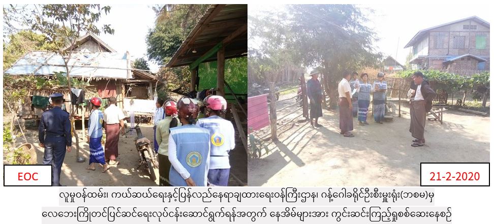 လူမှုဝန်ထမ်း၊ ကယ်ဆယ်ရေးနှင့် ပြန်လည်နေရာချထားရေးဝန်ကြီးဌာန၊ ဘေးအန္တရာယ်ဆိုင်ရာစီမံခန့်ခွဲမှုဦးစီးဌာန၊ ဂန့်ဂေါခရိုင်ဦးစီးမှူးရုံးမှ တာဝန်ရှိသူများသည် ၂၀၁၉-၂၀၂၀ဘဏ္ဍာရေးနှစ်တွင် လေဘေးကြိုတင်ပြင်ဆင်ရေးလုပ်ငန်းဆောင်ရွက်မည့် နေအိမ်(၂၀၀)လုံးအနက် ဂန့်ဂေါခရိုင်၊ ဂန့်ဂေါမြို့နယ်၊ ရွာစည်ကျေးရွာ၌ ပြင်ဆင်ရန်လိုအပ်သည့်နေအိမ်(၂၅)လုံးအား (၂၁-၂-၂၀၂၀)ရက်နေ့(၁၅း၁၅)နာရီမှ (၁၆း၀၀)နာရီအထိ မြို့နယ်အဆင့်ဌာနဆိုင်ရာများနှင့် အတူ ကွင်းဆင်းကြည့်ရှုစစ်ဆေးဆောင်ရွက်ခဲ့ပါကြောင်း သတင်းရရှိပါသည်။
