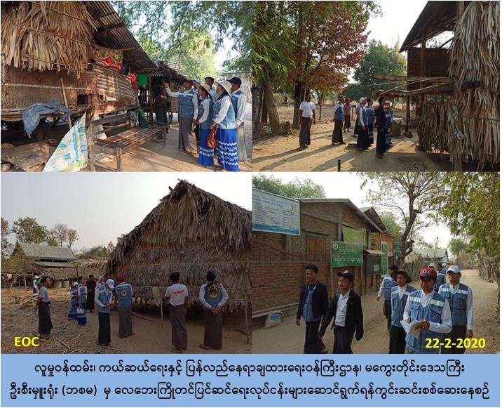 လူမှုဝန်ထမ်း၊ ကယ်ဆယ်ရေးနှင့် ပြန်လည်နေရာချထားရေးဝန်ကြီးဌာန၊ ဘေးအန္တရာယ်ဆိုင်ရာ စီမံခန့်ခွဲမှုဦးစီးဌာန၊ မကွေးတိုင်းဒေသကြီးဦးစီးမှူးရုံးမှ တာဝန်ရှိသူများသည် (၂၀၁၉-၂၀၂၀) ဘဏ္ဍာရေးနှစ်တွင် လေဘေးကြိုတင်ပြင်ဆင်ရေးလုပ်ငန်းဆောင်ရွက်မည့် နေအိမ် (၂၀၀) လုံးအနက် မကွေးမြို့နယ်၊ ကြည်တလုံးကျေးရွာ၌ ပြင်ဆင်ရန်လိုအပ်သည့် နေအိမ် (၁၀၀) လုံး အား (၂၂-၂-၂၀၂၀) ရက်နေ့ (၀၇:၃၀) နာရီမှ (၁၃:၄၅) နာရီအထိ ကျေးရွာအုပ်ချုပ်ရေးမှူး၊ ကျေးရွာဖွံ့ဖြိုးရေးကော်မတီ၊ အရန်မီးသတ်အဖွဲ့ဝင်များနှင့်အတူ ကွင်းဆင်းကြည့်ရှုစစ်ဆေး ဆောင်ရွက်ခဲ့ပါကြောင်း သိရှိရပါသည်။