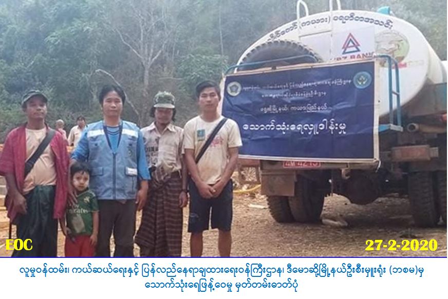လူမှုဝန်ထမ်း၊ ကယ်ဆယ်ရေးနှင့် ပြန်လည်နေရာချထားရေးဝန်ကြီးဌာန၊ ဘေးအန္တရာယ်ဆိုင်ရာစီမံ ခန့်ခွဲမှုဦးစီးဌာန၊ကယားပြည်နယ်၊ ဒီးမော့ဆိုမြို့နယ်ဦးစီးမှူးရုံးမှတာဝန်ရှိသူများသည် (၂၇-၂-၂၀၂၀) ရက်နေ့တွင် ဖရူဆိုမြို့နယ် ၊ ကေးလျားကျေးရွာအုပ်စု၊ ထီးဗျားညေကျေးရွာတွင် သောက်သုံးရေ ဂါလံ(၃၂၀၀)အား သွားရောက်လှူဒါန်းခဲ့ပါကြောင်း သတင်းရရှိပါသည်။