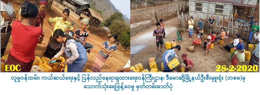 လူမှုဝန်ထမ်း၊ ကယ်ဆယ်ရေးနှင့် ပြန်လည်နေရာချထားရေးဝန်ကြီးဌာန၊ ဘေးအန္တရာယ်ဆိုင်ရာစီမံ ခန့်ခွဲမှုဦးစီးဌာန၊ ကယားပြည်နယ်၊ ဒီးမော့ဆိုမြို့နယ်ဦးစီးမှူးရုံးမှတာဝန်ရှိသူများသည်(၂၈-၂-၂၀၂၀) ရက်နေ့တွင် ဒီးမော့ဆိုမြို့နယ် ၊ ဒေါဖုကျေးရွာအုပ်စု၊ ဒေါပဲ့ကျးရွာတွင် သောက်သုံးရေ ဂါလံ (၃၂၀၀)အား သွားရောက်လှူဒါန်းခဲ့ပါကြောင်း သတင်းရရှိပါသည်။