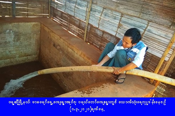 လူမှုဝန်ထမ်း၊ ကယ်ဆယ်ရေးနှင့် ပြန်လည်နေရာချထားရေးဝန်ကြီးဌာန၊ ဘေးအန္တရာယ်ဆိုင်ရာစီမံခန့်ခွဲမှုဦးစီးဌာန၊ ကယားပြည်နယ်ဦးစီးမှူးရုံးမှ တာဝန်ရှိသူများသည် (၁.၃.၂၀၂၀)ရက်နေ့တွင် ဖရူဆိုမြို့နယ်၊ မာခရော်ရှေ့ကျေးရွာအုပ်စု၊ ပရယ်တော်ကျေးရွာသို့ ရေသယ်ယာဉ်(၁)စီးဖြင့် သောက်သုံးရေ ဂါလံ (၃၂၀၀)အား သွားရောက်ဖြန့်ဝေပေးခဲ့ပါကြောင်း သတင်းရရှိပါသည်။