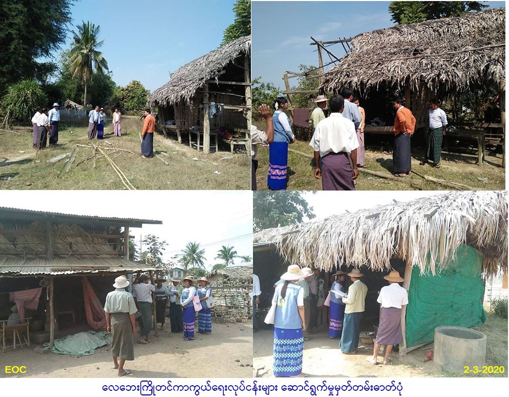 လူမှုဝန်ထမ်း၊ ကယ်ဆယ်ရေးနှင် ပြန်လည်နေရာချထားရေးဝန်ကြီးဌာန၊ ဘေးအန္တရာယ်ဆိုင်ရာစီမံခန့်ခွဲမှုဦးစီးဌာန၊ စစ်ကိုင်း တိုင်းဒေသကြီးဦးစီးမှူးရုံးမှ တာဝန်ရှိသူများနှင့် ကနီမြို့နယ်ဦးစီးမှှူးရုံးမှ တာဝန်ရှိသူများသည် (၂-၃-၂၀၂၀)ရက်နေ့တွင် ကနီ မြို့နယ်အတွင်းရှိ လေဘေးကြိုတင်ကာကွယ်ရေးလုပ်ငန်းဆောင်ရွက်မည့် ဝင်မနားကျေးရွာအုပ်စုပျဉ်းမှော်ကျေးရွာမှ ပြင်ဆင်ရန် လိုအပ်သော နေအိမ် (၂၉)လုံးနှင့် ကျော်ရွာကျေးရွာအုပ်စု၊ ကံဇီးဘကျေးရွာမှ ပြုပြင်ရန်လိုအပ်သည့် နေအိမ် (၃၆)လုံးတို့အား တိုင်းဒေသကြီးလွှတ်တော်ကိုယ်စားလှယ်များ၊ ဒုတိယမြို့နယ်အုပ်ချုပ်ရေးမှူး၊ မြို့နယ်စည်ပင်သာယာရေးကော်မတီဥက္ကဌ၊ လူငယ့်အားမာန် CSO အဖွဲ့၊ ဟိတပုညလူမှုရေးအသင်းအဖွဲ့များ ကျေးရွာခွဲတာဝန်ခံရပ်ကျေးစာရေး ရပ်မိရပ်ဖများကျေးရွာမှ ရာအိမ်မှူး၊ ဆယ်အိမ်မှူးများနှင့်အတူ ကွင်းဆင်းကြည့်ရှုစစ်ဆေးခြင်းလုပ်ငန်းများဆောင်ရွက်ခဲ့ပါကြောင်း သတင်းရရှိပါသည်။