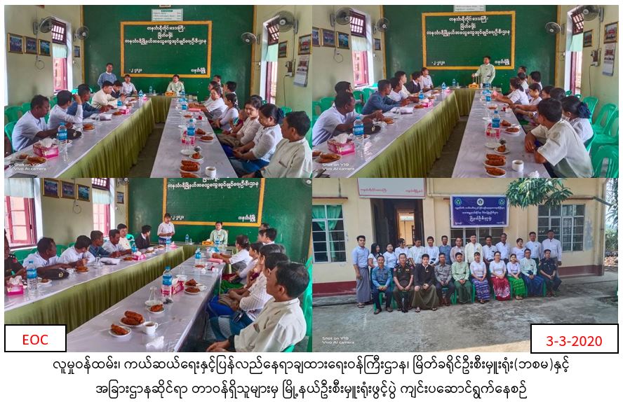 လူမှုဝန်ထမ်း၊ ကယ်ဆယ်ရေးနှင့်ပြန်လည်နေရာချထားရေးဝန်ကြီးဌာန၊ ဘေးအန္တရာယ်ဆိုင်ရာစီမံခန့်ခွဲမှုဦးစီးဌာန၊ မြိတ်ခရိုင်ဦးစီးမှူးရုံးမှ (၃.၃.၂၀၂၀)နေ့တွင် တနင်္သာရီမြို့နယ်ဦးစီးမှူးရုံးဖွင့်လှစ်ပွဲကို တနင်္သာရီမြို့နယ် အထွေထွေအုပ်ချုပ်ရေးဦးစီးဌာန အစည်းအဝေးခန်းမတွင် ပြုလုပ်ခဲ့ပြီး တက်ရောက်လာသောဌာနဆိုင်ရာများအား ဦးစီးဌာန၏ လုပ်ဆောင်နေသောလုပ်ငန်းတာဝန်များအား မိတ်ဆက်တင်ပြကာ လက်ဖက်ရည်မုန့်တို့နှင့် တည်ခင်းဧည့်ခံခြင်းများအား ဆောင်ရွက်ခဲ့ကြောင်း သတင်းရရှိပါသည်။