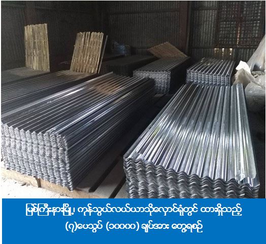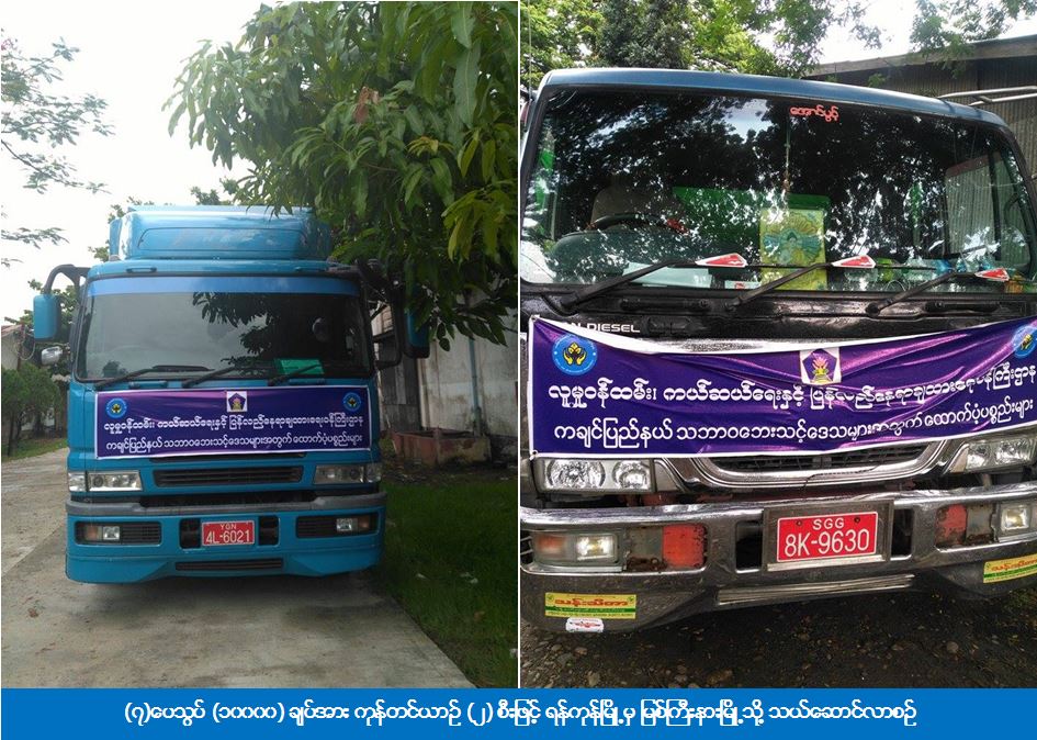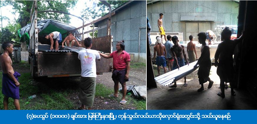 ကချင်ပြည်နယ်အတွင်း သဘာဝဘေးအန္တရာယ်ဖြစ်ပွားသည့်ဒေသများအား ပြန်လည်ထူထောင်ရေးလုပ်ငန်းများ ဆောင်ရွက်ရန်အတွက် လူမှုဝန်ထမ်း၊ ကယ်ဆယ်ရေးနှင့် ပြန်လည်နေရာချထားရေးဝန်ကြီးဌာနမှ ကချင်ပြည်နယ်အစိုးရအဖွဲ့သို့ ထောက်ပံ့သော (၇)ပေသွပ် (၁၀၀၀၀ ) ချပ်သည် ကုန်တင်ယာဉ် (၂) စီးဖြင့် ရန်ကုန်မြို့မှ (၁-၆-၂၀၁၆) ရက်နေ့တွင် စတင်ထွက်ခွာခဲ့ရာ မြစ်ကြီးနားမြို့သို့ (၅-၆-၂၀၁၆ ) ရက်နေ့တွင် ရောက်ရှိခဲ့ပြီး ကုန်သွယ်လယ်ယာသိုလှောင်ရုံတွင် စုပုံထားရှိခဲ့ကာ ပြည်နယ်အစိုးရအဖွဲ့အစီအစဉ်ဖြင့် ဘေးသင့်ဒေသများသို့ ထောက်ပံ့သွားမည်ဖြစ်ပါကြောင်း သိရှိရပါသည်။