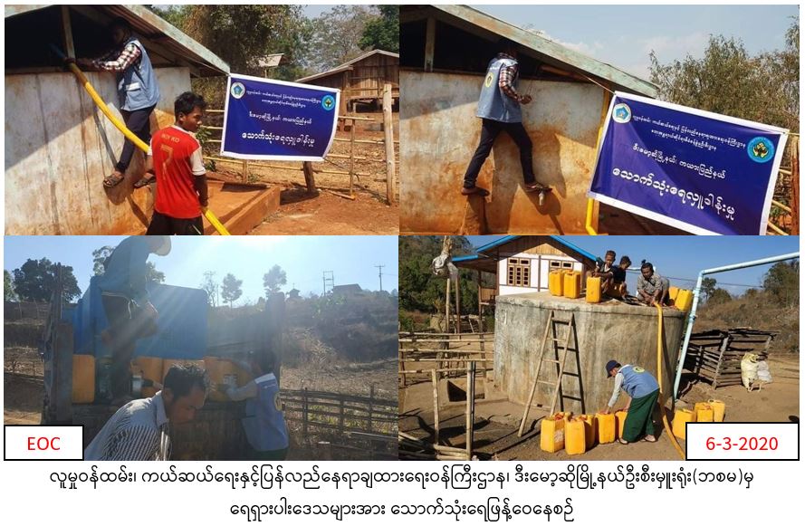 လူမှုဝန်ထမ်း၊ ကယ်ဆယ်ရေးနှင့်ပြန်လည်နေရာချထားရေးဝန်ကြီးဌာန၊ ဘေးအန္တရာယ်ဆိုင်ရာစီမံခန့်ခွဲမှုဦးစီးဌာန၊ ဒီးမော့ဆိုမြို့နယ်ဦးစီးမှူးရုံးမှ (၅.၃.၂၀၂၀)ရက်နေ့တွင် ဒီးမော့ဆိုမြို့နယ်၊ လိုပူကျေးရွာအုပ်စု၊ ခေါင်းစောင်းကျေးရွာသို့ သောက်သုံးရေ ဂါလံ(၁၂၀၀)အား လည်းကောင်း၊ ဒီးမော့ဆိုမြို့နယ်၊ ဒေါဖုကျေးရွာအုပ်စု၊ ဒေါပဲ့ဒူကျေးရွာသို့ သောက်သုံးရေ ဂါလံ (၃၂၀၀)အားလည်းကောင်း သွားရောက်လှူဒါန်းခဲ့ကြောင်း သတင်းရရှိပါသည်။