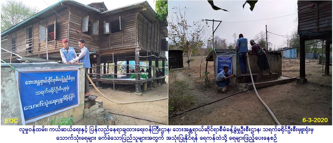 လူမှုဝန်ထမ်း၊ ကယ်ဆယ်ရေးနှင့် ပြန်လည်နေရာချထားရေးဝန်ကြီးဌာန၊ ဘေးအန္တရာယ်ဆိုင်ရာစီမံခန့်ခွဲမှုဦးစီးဌာန၊ သရက်ခရိုင် ဦးစီးမှူးရုံးမှ တာဝန်ရှိသူများသည် သရက်မြို့နယ်၊ ပိတောက်ပင်ကျေးရွာအုပ်စု၊ ငလှိုင်ခြုံရေနံနယ်မြေ၊ တောရကျောင်းဘုရား ကုန်းရပ်ရှိ ရေနံမြေရွာကျောင်း၌ သောက်သုံးရေ အခက်အခက်အခဲဖြစ်ပေါ်နေသော ပြည်သူများအတွက် သောက်သုံးရေဂါလံ (၃၂၀၀)ကို ရေသယ်ယာဉ်ဖြင့် (၆.၃.၂၀၂၀) ရက်နေ့၊ မွန်းလွဲ (၁၅:၀၀) နာရီအချိန်တွင် သွားရောက်ဖြန့်ဝေပေးခဲ့ပါကြောင်း သတင်းရှိပါသည်။
