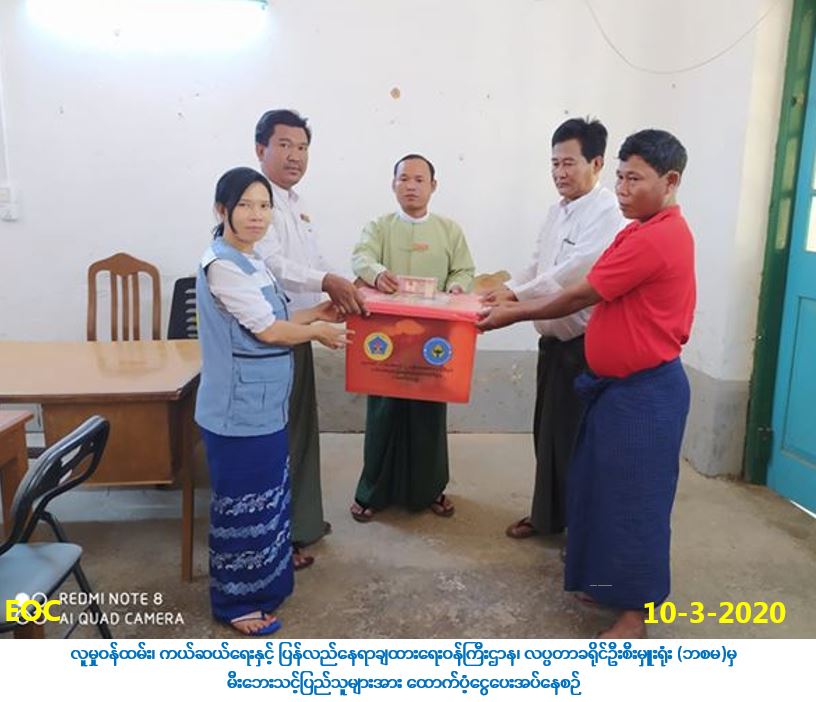 လူမှုဝန်ထမ်း၊ ကယ်ဆယ်ရေးနှင့် ပြန်လည်နေရာချထားရေးဝန်ကြီးဌာန၊ ဘေးအန္တရာယ်ဆိုင်ရာစီမံခန့်ခွဲမှုဦးစီး ဌာန၊ လပွတ္တာခရိုင်ဦးစီးမှူးရုံးမှ တာဝန်ရှိသူများသည်လပွတ္တာမြို့နယ်၊ ပိုးလောင်းကျေးရွာအုပ်စု၊ ချမ်းသာကုန်း ကျေးရွာတွင် (၆-၃-၂၀၂၀) ရက်နေ့၌ ဖြစ်ပွားခဲ့သော မီးလောင်မှုကြောင့် မီးဘေးသင့်ခဲ့သော အိမ်ခြေ(၁)လုံး၊ လူဦးရေ(၃)ဦး နှင့်လပွတ္တာမြို့၊ အမှတ်(၇)ရပ်ကွက်၊ သကြားဘုရားကုန်းတွင်(၈-၃-၂၀၂၀) ရက်နေ့၌ ဖြစ်ပွားခဲ့ သောမီးလောင်မှုကြောင့် မီးဘေးသင့်ခဲ့သောအိမ်ခြေ(၁) လုံး၊ လူဦးရေ(၅) ဦးတို့အတွက် အိမ်ထောင်စု(၂)စုစာ ကယ်ဆယ်ရေးပစ္စည်း (၁၆)မျိုး (၂)စုံ၊ အိမ်ဆောက်ပစ္စည်းဖိုးထောက်ပံ့ငွေ (၂၀၀,၀၀၀)ကျပ်၊ ဆန်ရိက္ခာ (၇)ရက်စာဖိုးထောက်ပံ့ငွေ (၁၆,၈၀၀)ကျပ်၊ စုစုပေါင်း (၂၁၆,၈၀၀) ကျပ်အား (၁၀-၃-၂၀၂၀) ရက်နေ့၊(၁၃း၃၀) နာရီအချိန်တွင်လပွတ္တာမြို့နယ်အထွေထွေအုပ်ချုပ်ရေးဦးစီးဌာနရုံး၌လွှတ်တော်ကိုယ်စားလှယ်ရုံးမှတာဝန်ရှိသူများ၊မြို့နယ်အထွေထွေအုပ်ချုပ်ရေးဦးစီးဌာနမှ ဒုတိယမြို့နယ်အုပ်ချုပ်ရေးမှူး၊ ကျေးရွာအုပ်ချုပ်ရေးမှူးများနှင့်အတူ ဘေးသင့်ပြည်သူများထံသို့ ထောက်ပံ့ပေးအပ်ခဲ့ပါကြောင်း သတင်းရရှိပါသည်။