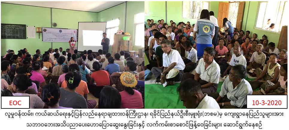 လူမှုဝန်ထမ်း၊ ကယ်ဆယ်ရေးနှင့်ပြည်လည်နေရာချထားရေးဝန်ကြီးဌာန၊ ဘေးအန္တရာယ်ဆိုင်ရာစီမံခန့်ခွဲမှုဦးစီးဌာန၊ ရခိုင်ပြည်နယ်ဦးစီးမှူးရုံးမှ တာဝန်ရှိသူများသည်(၁၀-၃-၂၀၂၀)ရက် စစ်တွေမြို့နယ်၊ နာရီကန်ကျေးရွာတွင် ကျေးရွာသူ/သား (၁၁၁)ဦးတို့အား မနက်ပိုင်းတွင်လည်းကောင်း၊ ကျောက်တန်းကြီးကျေးရွာတွင် ကျေးရွာသူ/သား (၁၃၅)ဦးတို့အား နေ့လည်ပိုင်းတွင်လည်းကောင်း သဘာဝဘေးအသိပညာပေးဟောပြောခြင်း၊ လက်ကမ်းစာဆောင်များဖြန့်ဝေခြင်း၊ ယမ်ယမ်ခေါက်ဆွဲထုပ်နှင့် ကော်ဖီမစ်ထုတ်များဝေငှခြင်းများ ဆောင်ရွက်ခဲ့ကြောင်း သတင်းရရှိပါသည်။