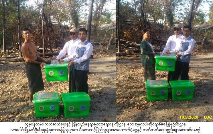 လူမှုဝန်ထမ်း၊ ကယ်ဆယ်ရေးနှင့် ပြန်လည်နေရာချထားရေးဝန်ကြီးဌာန၊ ဘေးအန္တရာယ်ဆိုင်ရာစီမံခန့်ခွဲမှုဦးစီး ဌာန၊ သာပေါင်းမြို့နယ်ဦးစီးမှူးရုံးမှတာ၀န်ရှိသူများသည် သာပေါင်းမြို့နယ်၊ ဒည်ကုန်းကျေးရွာအုပ်စု၊ ဒည်ကုန်းကျေးရွာ၌ (၇-၃-၂၀၂၀) ရက်နေ့တွင် ဖြစ်ပွားခဲ့သောမီးဘေးကြောင့် ပျက်စီးနေအိမ်(၃)လုံးအတွက် အိမ်ဆောက်ပစ္စည်းဖိုးထောက်ပံ့ငွေ (၃၀၀,၀၀ဝ/-) ကျပ်၊ လူဦးရေ(၇)ဦးအတွက် ဆန်ရိက္ခာ(၇)ရက်စာဖိုးထောက်ပံ့ငွေ (၁၄,၇၀ဝ/-) ကျပ်နှင့် ကယ်ဆယ်ရေးပစ္စည်း(၁၆)မျိုး (၃) အိမ်ထောင်စုစာတို့ကို (၁၀-၃-၂၀၂၀) ရက်နေ့၊ (၁၆:၃၀)နာရီအချိန်တွင် ကျေးရွာအုပ်ချုပ်ရေးမှူးနှင့်အတူ ပြည်သူ့လက်ဝယ်အရောက် ထောက်ပံ့ပေးအပ်ခဲ့ပါကြောင်း သတင်းရရှိပါသည်။