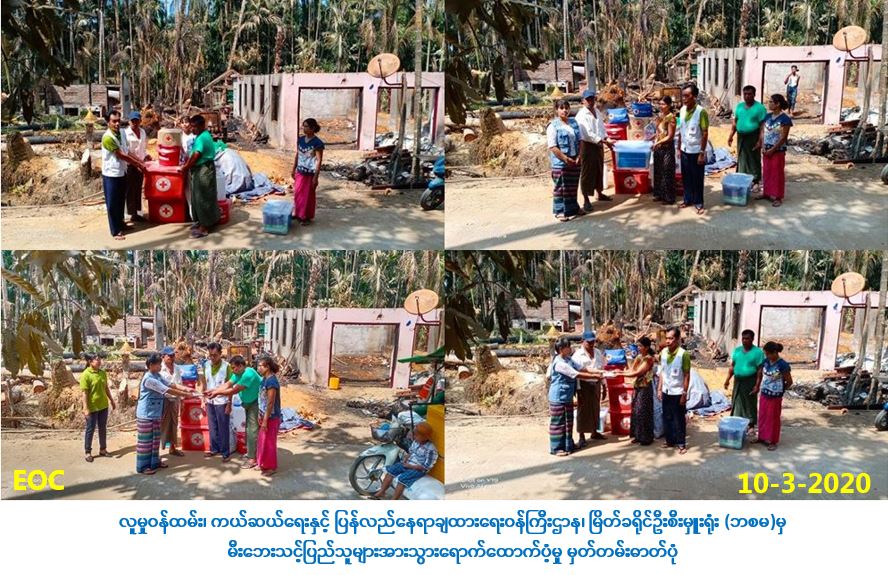 လူမှုဝန်ထမ်း၊ ကယ်ဆယ်ရေးနှင့် ပြန်လည်နေရာချထားရေးဝန်ကြီးဌာန၊ ဘေးအန္တရာယ် ဆိုင်ရာ စီမံခန့်ခွဲမှုဦးစီးဌာန၊ မြိတ်ခရိုင်ဦးစီးမှူးရုံးမှ တာဝန်ရှိသူများသည် (၉-၃-၂၀၂၀)ရက်နေ့တွင် ကျွန်းစုမြို့နယ်၊ ကျွဲခရံကျေးရွာအုပ်စု၊ သဇင်ကျေးရွာ၌ ဖြစ်ပွားခဲ့သော မီးဘေးမှ မီးဘေးသင့်အိမ်ထောင်စု (၂) စုအတွက် (၃၄,၇၅၃) ကျပ်တန်ဖိုးရှိ ကယ်ဆယ်ရေးပစ္စည်း အိမ်ထောင်စု(၂)စုစာ၊ ဘေးသင့်အိမ် (၂) လုံးအတွက် အိမ်ဆောက်ပစ္စည်းဖိုး ထောက်ပံ့ငွေ(၂၀၀,၀၀၀)ကျပ်၊ ဘေးသင့်လူဦးရေ (၁၂) ဦးအတွက် ဆန်ရိက္ခာဖိုးထောက်ပံ့ငွေ (၂၅,၂၀၀) ကျပ်၊ စုစုပေါင်း ရန်ပုံငွေ (၃၂၅,၂၀၀)ကျပ်အား (၁၀-၃-၂၀၂၀) ရက်နေ့၊ (၁၃:၄၅) အချိန်တွင် ကျွန်းစုမြို့နယ်၊ ကြက်ခြေနီတပ်ဖွဲ့နှင့်အတူ သွားရောက်ထောက်ပံ့ ပေးခဲ့ပါကြောင်း သတင်းရရှိပါသည်။