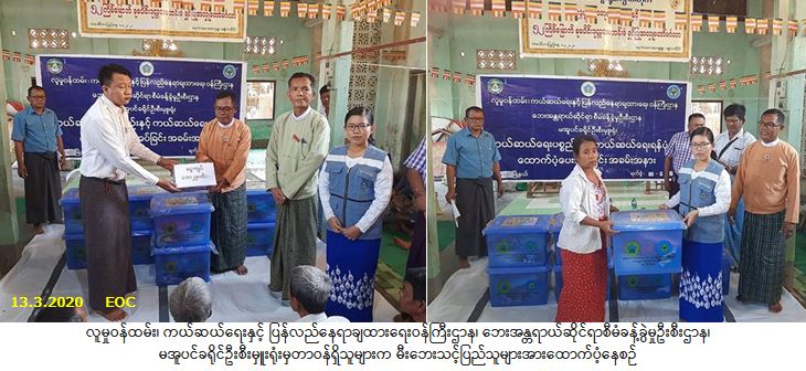 လူမှုဝန်ထမ်း၊ ကယ်ဆယ်ရေးနှင့် ပြန်လည်နေရာချထားရေးဝန်ကြီးဌာန၊ ဘေးအန္တရာယ်ဆိုင်ရာစီမံခန့်ခွဲမှုဦးစီး ဌာန၊ မအူပင်ခရိုင်ဦးစီးမှူးရုံးမှတာဝန်ရှိသူများသည် မအူပင်ခရိုင်၊ မအူပင်မြို့နယ်၊ ရေလဲကလေးကျေးရွာအုပ်စု၊ ခနွဲကဘိုကျေးရွာ၌ (၁၂-၃-၂၀၂၀) ရက်နေ့တွင် ဖြစ်ပွားခဲ့သောမီးဘေးကြောင့် ပျက်စီးနေအိမ်(၁၀)လုံး၊ အိမ်ထောင်စု(၁၀)စုမှ လူဦးရေ(၄၉)ဦးဘေးသင့်ခဲ့ရာ အဆိုပါဘေးသင့်ပြည်သူများအတွက် ကယ်ဆယ်ရေးပစ္စည်း (၁၆)မျိုး အိမ်ထောင်စု(၁၀)စုစာ၊ Care Myanmar ပိုက်ဖျာ (၁၀)ချပ်၊ အိမ်ဆောက်ပစ္စည်းဖိုးထောက်ပံ့ငွေ (၁,၀၀၀,၀၀ဝ/-) ကျပ်နှင့် ဆန်ရိက္ခာဖိုးထောက်ပံ့ငွေ (၁၀၂,၉၀ဝ/-) ကျပ်တို့ကို (၁၃-၃-၂၀၂၀) ရက်နေ့၊ (၁၁:၃၀)နာရီအချိန်တွင် မအူပင်မြို့နယ်တိုင်းဒေသကြီးလွှတ်တော်ကိုယ်စားလှယ်၊ မအူပင်မြို့နယ် အထွေထွေ အုပ်ချုပ်ရေးဦးစီးဌာန၊ အုပ်ချုပ်ရေးမှူး၊ မြို့နယ်ကြက်ခြေနီတပ်ဖွဲ့မှူးတို့နှင့်အတူ ကျေးရွာအုပ်ချုပ်ရေးမှူး၊ ရပ်မိ/ရပ်ဖများ ရှေ့မှောက်၌ ပြည်သူ့လက်ဝယ်အရောက် ထောက်ပံ့ပေးအပ်ခဲ့ပါကြောင်း သတင်းရရှိပါသည်။