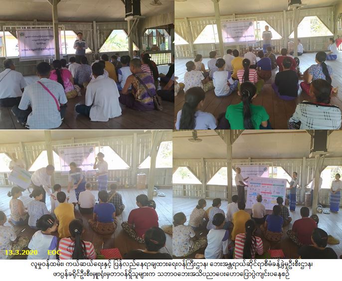 လူမှုဝန်ထမ်း၊ ကယ်ဆယ်ရေးနှင့် ပြန်လည်နေရာချထားရေးဝန်ကြီးဌာန၊ ဘေးအန္တရာယ်ဆိုင်ရာစီမံခန့်ခွဲမှုဦးစီး ဌာန၊ ဖာပွန်ခရိုင်ဦးစီးမှူးရုံးမှတာဝန်ရှိသူများသည် (၁၃-၃-၂၀၂၀) ရက်နေ့၊ (၁၃:၀၀)နာရီအချိန်တွင် ဖာပွန်မြို့၊ အမှတ်(၂)ရပ်ကွက်၊ ဝေဠုဝန်ဘုန်းတော်ကြီးကျောင်း၌ သဘာဝဘေးအန္တရာယ်ဆိုင်ရာအသိပညာပေးဟောပြောပွဲကို ပြည်သူ (၁၀၀) ဦးခန့်ဖြင့်ကျင်းပပြုလုပ်ခဲ့ရာ ဟောပြောပွဲ၌ ဦးစီးဌာန၏ဆောင်ရွက်နေမှုများ၊ မီးဘေး၊ ရေဘေး၊ မုန်တိုင်းဘေး၊ ငလျင်ဘေးတို့နှင့်စပ်လျဉ်း၍ ဆောင်ရန်/ရှောင်ရန်အချက်များဟောပြောခဲ့ပြီး တက်ရောက်လာသူများအား လက်ကမ်း စာစောင်များနှင့် ဗီနိုင်းပိုစတာများ ဖြန့်ဝေပေးခဲ့ပါကြောင်း သတင်းရရှိပါသည်။