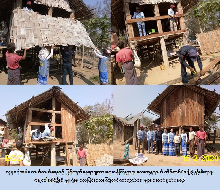 လူမှုဝန်ထမ်း၊ ကယ်ဆယ်ရေးနှင့် ပြန်လည်နေရာချထားရေးဝန်ကြီးဌာန၊ ဘေးအန္တရာယ် ဆိုင်ရာစီမံခန့့်ခွဲမှုဦးစီးဌာန၊ ဂန့်ဂေါခရိုင်ဦးစီးမှူးရုံးမှ တာဝန်ရှိသူများသည် (၁၄-၃-၂၀၂၀) ရက်နေ့၊ ( ၀၉ : ၀၀ ) နာရီအချိန်မှ ( ၁၆ : ၃၀ ) နာရီအချိန်ထိ ဇီးပြားကျေးရွာအုပ်စု၊ အန်းတားကျေးရွာတွင် လေပြင်းဘေးကြိုတင်ကာကွယ်ရေး နေအိမ်များအားဖြည့်ပြုပြင်ခြင်း အား မြို့နယ်အဆင့် သဘာဝဘေးစီမံခန့်ခွဲမှုကော်မတီ၊ ကျေးရွာအုပ်ချုပ်ရေးမှူး၊ ကျေးရွာပြည် သူလူထုတို့နှင့် ပူးပေါင်းဆောင်ရွက်ခဲ့ပါကြောင်း သတင်းရရှိပါသည်။