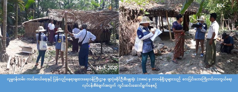 လူမှုဝန်ထမ်း၊ ကယ်ဆယ်ရေးနှင့် ပြန်လည်နေရာချထားရေးဝန်ကြီးဌာန၊ ဘေးအန္တရာယ်ဆိုင်ရာ စီမံ ခန့်ခွဲမှုဦးစီးဌာန၊ ဧရာဝတီတိုင်းဒေသကြီး၊ ဖျာပုံခရိုင်ဦးစီးမှူးရုံးမှတာဝန်ရှိသူများသည် ၂၀၁၉-၂၀၂၀ ဘဏ္ဍာနှစ်လေပြင်းဘေးကြိုတင်ကာကွယ်ရေး လုပ်ငန်းစီမံချက်အတွက် ဖျာပုံမြို့နယ်၊ သဲအိမ်ကျောင်းစု ကျေးရွာအုပ်စု၊ ကျုံခရိုင်၊ ရွှေတောင်၊ မြစ်တန်း၊ ပတုပ်၊ သကံဝ၊ ရှမ်းကွင်း၊ လက်ဖျောက်ဆိုင်၊ ကျောင်းစု ကျေးရွာများသို့ မိုးဦးကျကာလ၌ ဖြစ်ပွားတတ်သောလေပြင်းဘေးကြောင့် ထိခိုက်ပျက်စီးလွယ် သောနေအိမ်များ၊ကြံ့ခိုင်မှုအားနည်းပြီး ပြန်လည်မပြုပြင်နိုင်သောနေအိမ် (သက်ကြီးရွယ်အိုများ၊ မသန်စွမ်းသူများ၊ အမျိုးသမီးဦးဆောင်သောနေအိမ်များ၊ ဆင်းရဲနွမ်းပါးသောနေအိမ်များ)အား သင့်တင့် သော ခိုင်ခံ့မှုရရရှိရန်အတွက် လေပြင်းဘေးကြိုတင်ပြင်ဆင် ရေးဆောင်ရွက်ရန် ကျေးရွာအုပ်စု အုပ်ချုပ်ရေးမှူး၊အထွေထွေအုပ်ချုပ်ရေးဦးစီးဌာနရပ်/ကျေးစာရေး၊နယ်မြေမှူး၊ ရာအိမ်မှူး၊ ဆယ်အိမ်မှူး များနှင့်ရပ်မိရပ်ဖပူးပေါင်းပါဝင်သောအဖွဲ့ဖြင့် (၁၄-၃-၂၀၂၀)ရက်နေ့တွင် ကွင်းဆင်းစာရင်းကောက်ယူ ဆောင်ရွက်လျက်ရှိကြောင်း သိရှိရပါသည်။