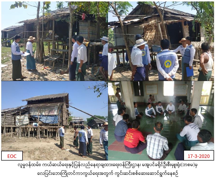 လူမှုဝန်ထမ်း၊ ကယ်ဆယ်ရေးနှင့်ပြန်လည်နေရာချထားရေးဝန်ကြီးဌာန၊ဘေးအန္တရာယ်ဆိုင်ရာစီမံခန့်ခွဲမှုဦးစီးဌာန၊ ဧရာဝတီတိုင်းဒေသကြီး၊ မအူပင်ခရိုင်ဦးစီးမှူးရုံးမှတာဝန်ရှိသူများသည် (၂၀၁၉-၂၀၂၀) ဘဏ္ဍာနှစ်လေပြင်းဘေးကြိုတင်ကာကွယ်ရေး လုပ်ငန်းစီမံချက်အတွက် ပန်းတနော်မြို့နယ်၊ ကျုံတိုင်းကြီးကျေးရွာအုပ်စု၊ ကျုံတိုင်းကြီးကျေးရွာတွင် မိုးဦးကျကာလ၌ ဖြစ်ပွားတတ်သောလေပြင်းဘေးကြောင့် ပျက်စီးနိုင်သော နေအိမ်များ၊ ကြံ့ခိုင်မှုအားနည်းပြီး ပြန်လည်မပြုပြင်နိုင်သော နေအိမ်များအား သင့်တင့်သော ခိုင်ခံ့မှုရရရှိရန်အတွက်လေပြင်းဘေးကြိုတင်ပြင်ဆင်ရေးဆောင်ရွက်ရန် ပန်းတနော်မြို့နယ်အထွေထွေအုပ်ချုပ်ရေးဦးစီးဌာန၊ ကျေးရွာအုပ်ချုပ်ရေးမှူး၊ ရပ်မိရပ်ဖတို့နှင့်ပူးပေါင်း၍ (၁၇-၃-၂၀၂၀)ရက်နေ့တွင် ကွင်းဆင်းစာရင်းကောက်လျက်ရှိပါကြောင်း သတင်းရရှိပါသည်။