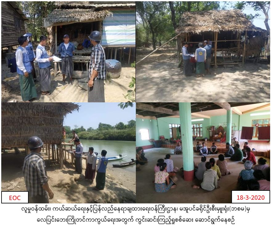 လူမှုဝန်ထမ်း၊ ကယ်ဆယ်ရေးနှင့်ပြန်လည်နေရာချထားရေးဝန်ကြီးဌာန၊ ဘေးအန္တရာယ်ဆိုင်ရာစီမံခန့်ခွဲမှုဦးစီးဌာန၊ ဧရာဝတီတိုင်းဒေသကြီး၊ မအူပင်ခရိုင်ဦးစီးမှူးရုံးမှတာဝန်ရှိသူများသည် ၂၀၁၉-၂၀၂၀ ဘဏ္ဍာနှစ် လေပြင်းဘေးကြိုတင်ကာကွယ်ရေး လုပ်ငန်းစီမံချက်အတွက် ပန်းတနော်မြို့နယ်၊ ထိန်ကုလားကုန်းကျေးရွာအုပ်စု၊ ထိန်ကုလားကုန်းကျေးရွာတွင် မိုးဦးကျကာလ၌ ဖြစ်ပွားတတ်သော လေပြင်းဘေးကြောင့် ပျက်စီးနိုင်သော နေအိမ်များ၊ ကြံ့ခိုင်မှုအားနည်းပြီး ပြန်လည်မပြုပြင်နိုင်သော နေအိမ်များအား သင့်တင့်သော ခိုင်ခံ့မှုရရရှိရန်အတွက် လေပြင်းဘေးကြိုတင်ပြင်ဆင်ရေးဆောင်ရွက်ရန် ပန်းတနော်မြို့နယ် အထွေထွေအုပ်ချုပ်ရေးဦးစီးဌာန၊ ကျေးရွာအုပ်ချုပ်ရေးမှူး၊ ရပ်မိရပ်ဖတို့နှင့်ပူးပေါင်း၍ (၁၈-၃-၂၀၂၀)ရက်နေ့တွင် ကွင်းဆင်းစာရင်းကောက်လျက်ရှိပါကြောင်း သတင်းရရှိပါသည်။
