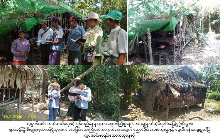လူမှုဝန်ထမ်း၊ ကယ်ဆယ်ရေးနှင့် ပြန်လည်နေရာချထားရေးဝန်ကြီးဌာန၊ ဘေးအန္တရာယ်ဆိုင်ရာစီမံခန့်ခွဲမှုဦးစီး ဌာန၊ ဖျာပုံခရိုင်ဦးစီးမှူးရုံးမှတာဝန်ရှိသူများသည် (၁၈-၃-၂၀၂၀) ရက်နေ့တွင် ကျိုက်လတ်မြို့နယ်၊ လေလံပင် ကျေးရွာအုပ်စုအတွင်းရှိ ညောင်ဝိုင်းလေးကျေးရွာ၌လည်းကောင်း၊ ကျိုက်လတ်မြို့နယ်၊ လေးအိမ်တန်း ကျေးရွာအုပ်စုအတွင်းရှိ ပွေလီကုန်းကျေးရွာ၌လည်းကောင်း လေပြင်းဘေးကြိုတင် ကာကွယ်နိုင်ရေးအတွက် အထွေထွေအုပ်ချုပ်ရေးဦးစီးဌာနမှ ကျေးရွာအုပ်အုပ်ချုပ်ရေးမှူး၊ ကျေးရွာအုပ်စု သဘာဝဘေးအန္တရာယ် ဆိုင်ရာစီမံခန့်ခွဲမှုကော်မတီဝင်များ၊ ရပ်မိ/ရပ်ဖများ၊ ကျေးရွာပြည်သူများနှင့် တွေ့ဆုံ၍ လေပြင်း ဘေးကြိုတင်ပြင်ဆင်ရေးလုပ်ငန်းများ ဆောင်ရွက်မည့်အခြေအနေအား ညှိနှိုင်းခြင်း၊ ခိုင်ခံ့မှုအားနည်းသော နေအိမ်များနှင့် အားဖြည့်မွမ်းမံပြင်ဆင်ရန်လိုအပ်သည့် နေအိမ်များအား ကွင်းဆင်း၍ စာရင်းကောက်ယူခြင်း တို့ဆောင်ရွက်ခဲ့ပါကြောင်း သတင်းရရှိပါသည်။