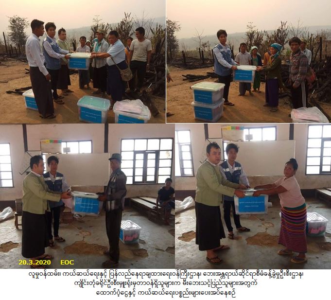 လူမှုဝန်ထမ်း၊ ကယ်ဆယ်ရေးနှင့် ပြန်လည်နေရာချထားရေးဝန်ကြီးဌာန၊ ဘေးအန္တရာယ်ဆိုင်ရာစီမံခန့်ခွဲမှုဦးစီး ဌာန၊ ကျိုင်းတုံခရိုင်ဦးစီးမှူးရုံးမှတာဝန်ရှိသူများသည် (၁၉-၃-၂၀၂၀)ရက်နေ့၊ (၁၄:၀၀)နာရီအချိန်ခန့်တွင် ကျိုင်းတုံခရိုင်၊ မိုင်းခတ်မြို့နယ်၊ ဝမ်ခုတ်ကျေးရွာအုပ်စု၊ နောင်ဖူကျေးရွာ၌ ဖြစ်ပွားခဲ့သော မီးဘေးကြောင့် နေအိမ်(၈)လုံး၊ အိမ်ထောင်စု (၈)စုမှ လူဦးရေ (၃၅) ဦးဘေးသင့်ခဲ့ရာ အဆိုပါဘေးသင့်ပြည်သူများအတွက် အိမ်ဆောက်ပစ္စည်းဖိုးထောက်ပံ့ငွေ (၈၀၀,၀၀၀/-) ကျပ်၊ ဆန်ရိက္ခာ(၇) ရက်စာဖိုးထောက်ပံ့ငွေ (၇၃,၅၀၀/-) ကျပ်နှင့် ကယ်ဆယ်ရေးပစ္စည်း (၂၂) မျိုး (၈)အိမ်ထောင်စုစာတို့ကို (၂၀-၃-၂၀၂၀) ရက်နေ့၊ (၁၅:၄၀) နာရီအချိန်တွင် ပြည်သူ့လက်ဝယ်အရောက် ထောက်ပံ့ပေးအပ်ခဲ့ပါကြောင်း သတင်းရရှိပါသည်။