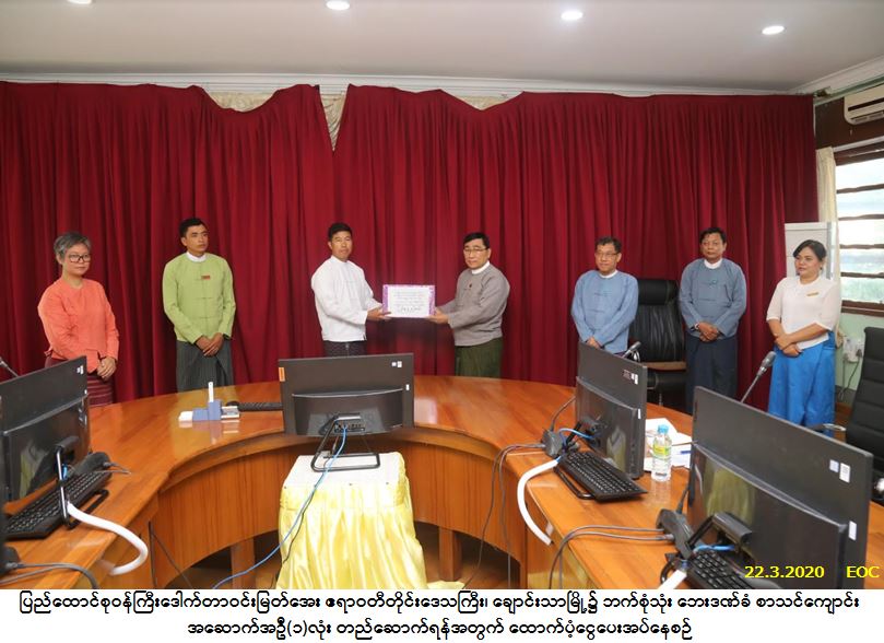 ရှေးဦးစွာ ပြည်ထောင်စုဝန်ကြီးက ယခုထောက်ပံ့ငွေပေးအပ်ပွဲကို လူမစုဘဲ တွေ့ဆုံခြင်း ပုံစံဖြင့် COVID -19 ရောဂါ ကာကွယ်ရေးဆိုင်ရာ ထုတ်ပြန်ချက်များနှင့်အညီ ဆောင်ရွက်ခြင်း ဖြစ်ကြောင်း၊ တာဝန်ရှိသူများ၊ ပြည်သူများနှင့် တွေ့ဆုံမှုတိုင်းတွင် ပြည်သူ့ကျန်းမာရေး ပြဿနာတစ်ရပ်အဖြစ် လက်ရှိဖြစ်ပေါ်နေသော COVID -19 ရောဂါနှင့် ပတ်သက်၍ ရှင်းလင်းရန် လိုအပ်ပါကြောင်း၊ အသက်ရှူလမ်းကြောင်းဆိုင်ရာရောဂါ (COVID − 19)ကို ကမ္ဘာ့ကျန်းမာရေးအဖွဲ့ (WHO) က ကမ္ဘာလုံးဆိုင်ရာကပ်ရောဂါအဖြစ် သတ်မှတ်ခဲ့ပြီးဖြစ်ကြောင်း၊ (COVID − 19) ရောဂါသည် ပြန့်နှံ့လွယ်ပါကြောင်း၊ ကမ္ဘာ့နိုင်ငံအများစုမှာ ကူးစက် ပြန့်နှံ့နေပြီဖြစ်ကြောင်း၊ မြန်မာနိုင်ငံတွင် ရောဂါပိုးကူးစက်ခံရမှု တိကျသောအထောက်အထား ယနေ့အထိ မရှိသေး သော်လည်း ရောဂါဖြစ်ပွားပြန့်နှံ့နေသော ပြည်ပနိုင်ငံများမှ ပြန်လာသူများတွင် ရောဂါပိုး ကူးစက်ခံရသူများ ပါလာနိုင်ချေရှိသည်ကို သတိရှိကြရန်လိုအပ်ကြောင်း၊ ကျန်းမာရေးနှင့် အားကစားဝန်ကြီးဌာနက မြန်မာနိုင်ငံသားများအပါအဝင် ခရီးသွားများအား လေကြောင်းဖြင့် ဝင်ရောက်လာမှုများကို စနစ်တကျ စစ်ဆေး စိစစ်ဆောင်ရွက်လျက်ရှိပြီး အလုပ်သမား၊ လူဝင်မှုကြီးကြပ်ရေးနှင့် ပြည်သူ့အင်အားဝန်ကြီးဌာနကလည်း မည်သည့်နိုင်ငံခြားသားကိုမဆို နယ်စပ်စစ်ဆေးရေးဂိတ်များမှတစ်ဆင့် ပြည်ဝင်ခွင့်ဗီဇာဖြင့် ဝင်ရောက်မှုကို ယာယီပိတ်ပင်ထားပြီး ဖြစ်ပါကြောင်း၊ ဤဧရာဝတီတိုင်းဒေသကြီးအတွင်း နှစ်သစ်ကူးရုံးပိတ်ရက်ကာလအတွင်း မိမိနိုင်ငံ၊ မိမိဒေသသို့ ပြန်လာကြမည့် ရွှေ့ပြောင်းလုပ်သားများအနေဖြင့် တရားဝင်နယ်စပ်ဂိတ်များမှ ပြန်လည်ဝင်ရောက်ခြင်းမဟုတ်ဘဲ မိမိအစီအစဉ်ဖြင့် ပြန်လည်ဝင်ရောက်လာကြသည့် သူများရှိနိုင်ကြောင်း၊ ထိုသူများကို မိမိပတ်ဝန်းကျင်တွင် တွေ့ရှိပါက COVID – 19 ရောဂါ၏ ကူးစက်ပြန့်နှံ့လွယ်မှုနှင့် အန္တရာယ်များကို နားလည်သဘောပေါက်အောင် ရှင်းပြရန်နှင့် သက်ဆိုင်ရာရပ်ကွက်ကျေးရွာ အုပ်ချုပ်ရေးမှူးများမှ တစ်ဆင့် ကျန်းမာရေးဌာနနှင့် ဆက်သွယ် ဆောင်ရွက်ပေးကြရန် လိုအပ်ပါကြောင်း၊ မိမိကြောင့် မိမိ မိသားစု၊ မိတ်ဆွေများနှင့် မိမိရပ်ရွာသို့ ရောဂါကူးစက်ပြန့်ပွားခြင်းကို ထိရောက်စွာ ကာကွယ်နိုင်ရန်အတွက် မိမိအိမ်တွင် (၁၄) ရက်ကြာ သီးခြားနေထိုင်ရန် လိုအပ်ပြီး ဖျားခြင်း၊ ချောင်းဆိုးခြင်း ဖြစ်ပွားပါက သက်ဆိုင်ရာ ကျန်းမာရေး ဌာနသို့ အသိပေးကုသရန် လိုအပ်ပါကြောင်း၊ ကျန်းမာရေးနှင့် အားကစားဝန်ကြီးဌာနက ထုတ်ပြန်ချက်များကို မိမိတို့တစ်ဦးချင်းက တာဝန်ယူ လိုက်နာကြရန်လိုကြောင်း၊ ရောဂါဖြစ်ပွားသော ဒေသသို့ သွားရောက်ခဲ့ခြင်းမရှိသော်လည်း မိမိတို့နိုင်ငံအတွင်း ရောဂ