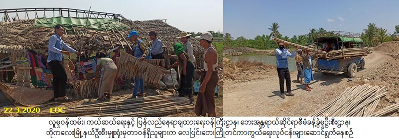 လူမှုဝန်ထမ်း၊ ကယ်ဆယ်ရေးနှင့် ပြန်လည်နေရာချထားရေးဝန်ကြီးဌာန၊ ဘေးအန္တရာယ်ဆိုင်ရာစီမံခန့်ခွဲမှုဦးစီး ဌာန၊ ဘိုကလေးမြို့နယ်ဦးစီးမှူးရုံးမှတာဝန်ရှိသူများသည် (၂၂-၃-၂၀၂၀) ရက်နေ့တွင် ဘိုကလေးမြို့နယ် ခနောင်ကျေးရွာအုပ်စု၊ ခနောင်ကျေးရွာ၌ ၂၀၁၉-၂၀၂၀ ဘဏ္ဍာရေးနှစ် လေပြင်းဘေးကြိုတင်ကာကွယ်ရေး လုပ်ငန်းစီမံချက် အကောင်အထည်ဖော်ဆောင်ရွက်ရန် လေပြင်းဘေးကြောင့် ပျက်စီးနိုင်သော နေအိမ်များ၊ ကြံ့ခိုင်မှုအားနည်းပြီး ပြန်လည်မပြုပြင်နိုင်သော နေအိမ်များ အားဖြည့်ပြုပြင်ပေးခြင်းတို့ကို ဘိုကလေးမြို့နယ် ခနောင်ကျေးရွာအုပ်စုရှိ ကျေးရွာအုပ်ချုပ်ရေးမှူး၊ ရပ်မိ/ရပ်ဖများ၊ စေတနာ့ဝန်ထမ်းများနှင့်အတူ ဆောင်ရွက်ခဲ့ပါကြောင်းသတင်းရရှိပါသည်။