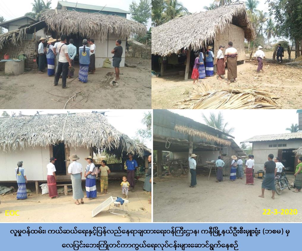 လူမှုဝန်ထမ်း၊ ကယ်ဆယ်ရေးနှင့် ပြန်လည်နေရာချထားရေးဝန်ကြီးဌာန၊ ဘေးအန္တရာယ်ဆိုင်ရာ စီမံခန့်ခွဲမှုဦးစီးဌာန၊ ကနီမြို့နယ်ဦးစီးမှူးရုံးမှ တာဝန်ရှိသူများသည် ကနီမြို့နယ်အတွင်းရှိ လေပြင်းဘေးကြိုတင်ကာကွယ်ရေးလုပ်ငန်း ဆောင်ရွက်နေသည့် ကျေးရွာ (၅) ရွာအနက်မှ ပျဉ်းမှော်ကျေးရွာနှင့် ကံဇိဘကျေးရွာများတွင် လေပြင်းဘေးကြိုတင်ကာကွယ်ခြင်းလုပ်ငန်းများ အား (၂၂-၃-၂၀၂၀) ရက်နေ့တွင် လွှတ်တော်ကိုယ်စားလှယ်များ၊ မြို့နယ်မီးသတ်အဖွဲ့ဝင်များ၊ မြတ်ပါရမီ လူမှုရေး အသင်းအဖွဲ့များ၊ ကျေးရွာခွဲတာဝန်ခံရပ်/ကျေးစာရေးများ၊ ရပ်မိ/ရပ်ဖများ၊ ကျေးရွာမှ ရာအိမ်မှူး/ဆယ်အိမ်မှူးများနှင့်အတူ ဆောင်ရွက်ခဲ့ပါကြောင်း သတင်းရရှိပါသည်။