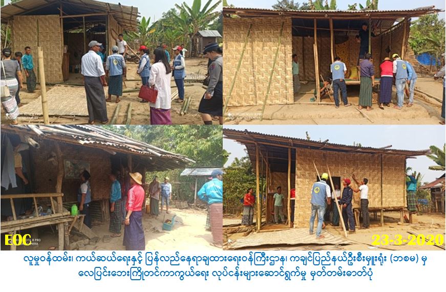 လူမှုဝန်ထမ်း၊ ကယ်ဆယ်ရေးနှင့် ပြန်လည်နေရာချထားရေးဝန်ကြီးဌာန၊ ဘေးအန္တရာယ်ဆိုင်ရာစီမံ ခန့်ခွဲမှုဦးစီးဌာန၊ ကချင်ပြည်နယ်ဦးစီးမှူးရုံးမှ တာဝန်ရှိသူများသည် (၂၃-၃-၂၀၂၀) ရက်နေ့တွင် မြစ်ကြီးနားမြို့နယ်အတွင်းရှိ မော်ဖောင်းကျေးရွာတွင် လေပြင်းဘေးကြိုတင်ကာကွယ်ရေးလုပ်ငန်း များအား မြို့နယ်သဘာဝဘေးစီမံခန့်ခွဲမှုကော်မတီဝင်များ၊ ကျေးရွာအုပ်ချုပ်ရေးမှူး၊ ရပ်မိရပ်ဖများ နှင့်အတူ ဆောင်ရွက်ခဲ့ပါကြောင်း သတင်းရရှိပါသည်။