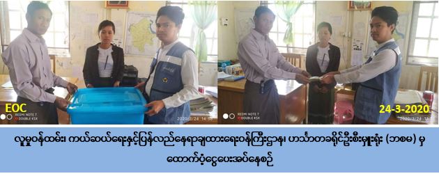 လူမှုဝန်ထမ်း၊ ကယ်ဆယ်ရေးနှင့်ပြန်လည်နေရာချထားရေးဝန်ကြီးဌာန၊ ဘေးအန္တရာယ်ဆိုင်ရာစီမံ ခန့်ခွဲမှုဦးစီးဌာန၊ ဟင်္သာတခရိုင်ဦးစီးမှူးရုံးမှ တာဝန်ရှိသူများသည် ဟင်္သာတမြို့နယ်၊ သင်္ဘန်း ကုန်းအုပ်စု၊ ဗောဓိကုန်းကျေးရွာတွင် (၂၃-၃-၂၀၂၀) ရက်နေ့တွင် ဖြစ်ပွားခဲ့သော မီးဘေးကြောင့် မီးလောင်ကျွမ်းခဲ့သည့် အိမ်ခြေ(၁) လုံး၊ အိမ်ထောင်စု(၁) စု၊ လူဦးရေ(၂) ဦးအတွက် အိမ်ဆောက် ပစ္စည်းဖိုးထောက်ပံ့ငွေ (၁၀၀,၀၀၀/-) ကျပ်၊ လူဦးရေ(၂) ဦးအတွက် ဆန်ရိက္ခာ(၇) ရက်စာ ထောက်ပံ့ငွေ (၄,၂၀၀/-) ကျပ်၊ စုစုပေါင်း ထောက်ပံ့ငွေ (၁၀၄,၂၀၀/-) ကျပ်နှင့် ကယ်ဆယ်ရေး ပစ္စည်း(၁၆) မျိုးတို့အား (၂၄-၃-၂၀၂၀) ရက်နေ့ (၁၅:၀၀) နာရီအချိန်တွင် သက်ဆိုင်ရာတာဝန် ရှိသူများနှင့်အတူ ထောက်ပံ့ပေးအပ်ခဲ့ပါကြောင်း သတင်းရရှိပါသည်။