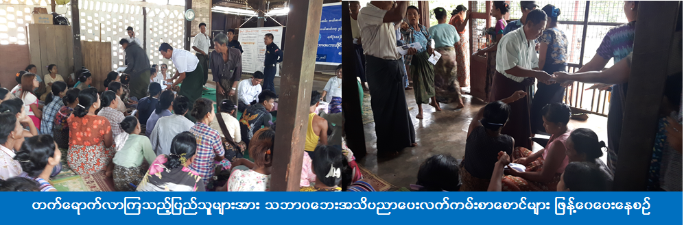 (၁၀-၆-၂၀၁၆) ရက်နေ့တွင် သထုံခရိုင်ကယ်ဆယ်ရေးနှင့် ပြန်လည်နေရာချထားရေးဦးစီးဌာန၏ ဦးဆောင်မှုဖြင့် ကျိုက်ထိုမြို့နယ်၊ ဘိုရားကြီးကျေးရွာတွင် သဘာဝဘေးအန္တရာယ် ကြိုတင်ကာကွယ်ရေးအသိပညာပေးဆွေးနွေးဟောပြာပွဲ ကျင်းပပြုလုပ်ခဲ့ပြီး တက်ရောက်လာကြသည့် ပြည်သူများအား သဘာဝဘေးအသိပညာပေးလက်ကမ်းစာစောင်များ ဖြန့်ဝေပေးခဲ့ကြောင်း သိရှိရပါသည်။