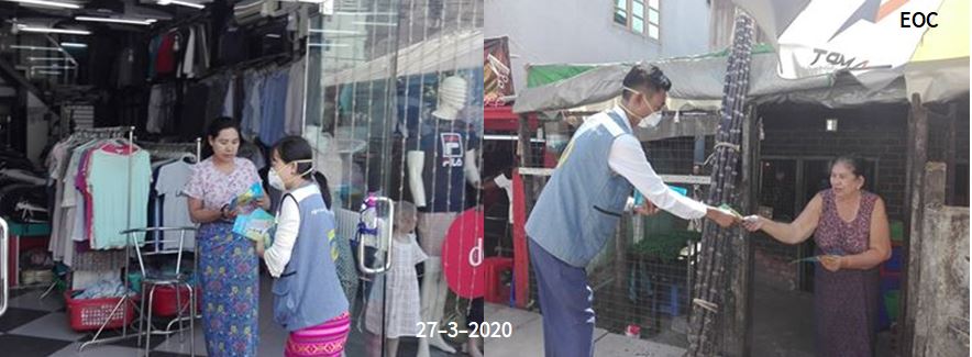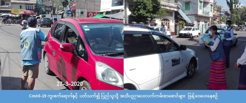လူမှုဝန်ထမ်း၊ ကယ်ဆယ်ရေးနှင့် ပြန်လည်နေရာချထားရေးဝန်ကြီးဌာန၊ ဘေးအန္တရာယ်ဆိုင်ရာစီမံခန့်ခွဲမှုဦးစီးဌာန၊ ရန်ကုန်တိုင်းဒေသကြီး ဦးစီးမှူးရုံးနှင့် လူမှုဝန်ထမ်းဦးစီးမှူးရုံး တို့ပူးပေါင်း၍ မရမ်းကုန်းမြို့နယ် အမှတ်(၁) (၂) (၄) (၅) ရပ်ကွက်များတွင် မေယ်တော်ယာဉ်ဖြင့်၄င်း၊ အမှတ်(၃) ရပ်ကွက်အတွင်း ဆိုက္ကားဖြင့် အသံချဲ့စက်များ တင်ဆောင်ကာ Covid-19 ကြိုတင်ကာကွယ် ထိန်းချုပ်နိုင်ရန် ပြည်သူအသိပညာပေး ပန်ကြားချက်များ၊ ကျန်းမာ ရေးနှင့်အားကစားဝန်ကြီးဌာနမှ ထုတ်ပြန်ထားသော လက်ကမ်းစာစောင်များအား အရာထမ်း၊ အမှုထမ်းများမှ ဖတ်ကြားခြင်း၊ ဖြန့်ဝေခြင်းများပြုလုပ်ခဲ့ကြကြောင်း သတင်းရရှိပါသည်။