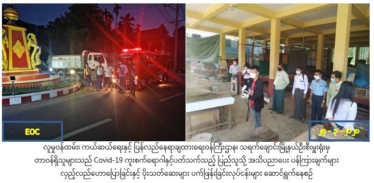 (၂၇-၃-၂၀၂၀) ရက်နေ့၌ သရက်ချောင်းမြို့နယ်၊ မြို့အဝင်အဝိုင်းပတ်နှင့် ရပ်ကွက်ကျေးရွာရှိ လမ်းဆုံလမ်းခွများ၊ လူသွားလာများသောနေရာများတွင် ပြည်သူများကိုCovid-19 ရောဂါကူးစက် ပျံ့နှံ့မှုများမဖြစ်ပွားစေရန်အတွက် အများပြည်သူများသိရှိလိုက်နာရန်အချက်များအား ပြည်သူလူထုသိရှိစေရန်အတွက် အသိပညာပေးခြင်းလုပ်ငန်းများကို အထွေထွေအုပ်ချုပ်ရေးဉီးစီးဌာန၊ မီးသတ်ဦးစီးဌာန၊ ရပ်ကွက်အုပ်ချုပ်ရေးမှူးနှင့်ပူးပေါင်း၍ ထိရောက်စွာဆောင်ရွက်ခဲ့ပြီး Covid-19 ရောဂါကာကွယ်ရန် ပိုးသတ်ဆေးများလိုက်ဖြန်းရာတွင်လဲ ပူးပေါင်းဆောင်ရွက်ခဲ့ကြောင်း သတင်းရရှိပါသည်။