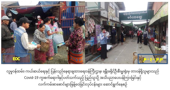 လူမှုဝန်ထမ်း၊ ကယ်ဆယ်ရေးနှင့် ပြန်လည်နေရာချထားရေးဝန်ကြီးဌာန၊ ဘေးအန္တရာယ်ဆိုင်ရာစီမံခန့်ခွဲမှုဉီးစီးဌာန၊ ခန္တီးခရိုင်ဦးစီးမှူးရုံးမှ တာဝန်ရှိသူများသည် (၂၈-၃-၂၀၂၀) ရက်နေ့ (၀၆:၃၀) မှ (၁၀:၀၀) အချိန်တွင် ခန္တီးခရိုင်၊ ခန္တီးမြို့နယ်အတွင်းနှင့် ဇီးဖြူကုန်းရပ်ကွက်များတွင် COVID -19 ကူးစက်ရောဂါနှင့်ပတ်သက်၍ အသိပညာပေးခြင်းနှင့် လက်ကမ်းစာစောင် ဖြန့်ဝေခြင်းများဆောင်ရွက်လျက်ရှိကြောင်း သတင်းရရှိပါသည်။