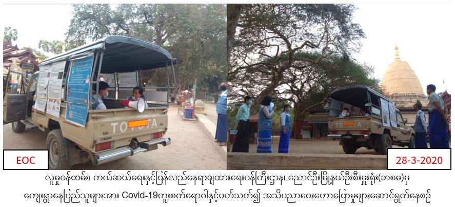 လူမှုဝန်ထမ်း၊ ကယ်ဆယ်ရေးနှင့် ပြန်လည်နေရာချထားရေးဝန်ကြီးဌာန၊ ဘေးအန္တရာယ်ဆိုင်ရာစီမံခန့်ခွဲမှုဉီးစီးဌာန၊ ညောင်ဦးခရိုင်ဉီးစီးမှူးရုံးမှ တာဝန်ရှိသူများသည် (၂၇-၃-၂၀၂၀) ရက်နေ့ (၁၇:၀၀)နာရီ ညောင်ဦးမြို့နယ်အတွင်းရှိ မြင်းကပါကျေးရွာ၊ မင်းနန်သူကျေးရွာနှင့် အနောက်ဖွားစောကျေးရွာများသို့ လှည့်လည်ပြီး COVID -19 ကူးစက်ရောဂါနှင့်ပတ်သက်ပြီး ဆောင်ရန်/ ရှောင်ရန်တို့အား ရပ်ကွက်/ ကျေးရွာနေပြည်သူတို့အား အသိပညာပေးဟောပြောခြင်းလုပ်ငန်းများ ဆောင်ရွက်လျက်ရှိကြောင်း သတင်းရရှိပါသည်။