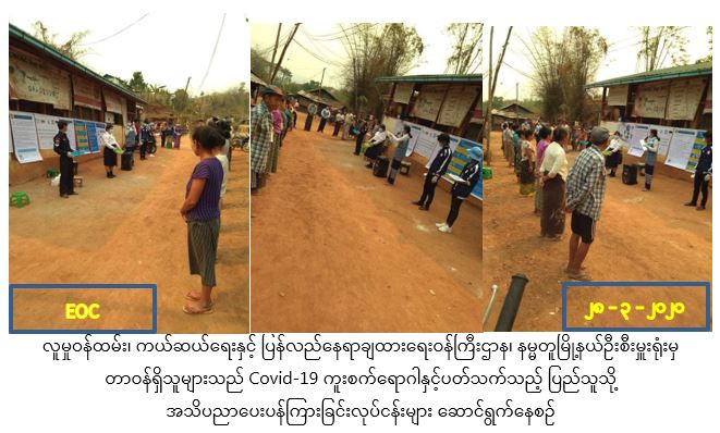 လူမှုဝန်ထမ်း၊ ကယ်ဆယ်ရေးနှင့် ပြန်လည်နေရာချထားရေးဝန်ကြီးဌာန၊ ဘေးအန္တရာယ်ဆိုင်ရာစီမံခန့်ခွဲမှုဦးစီးဌာန၊ နမ္မတူမြို့နယ်ဦးစီးမှူးရုံးမှ တာဝန်ရှိသူများသည် မတ်လ(၂၈) ရက်နေ့တွင် ထွေ/အုပ်၊ မီးသတ်၊ ကြက်ခြေနီ၊ စိမ်းလန်းဘဝလူမူဖွံ့ဖြိုးရေးအသင်း GLAD မိတ်ဆွေကောင်းပရဟိတအဖွဲ့များနှင့်အတူ နမ္မတူမြို့နယ်အတွင်းရှိ IDPs စခန်းများဖြစ်သည့် လီဆူ camp၊ ကြူဆော့ camp၊ ကချင်နှစ်ခြင်း camp များမှ အိမ်ထောင်စု (၁၂၉) စု လူဉီးရေ (၅၉၆)ဉီးအား COVID 19 ရောဂါကူးစက်ပျံ့နှံမှုများမဖြစ်ပွားစေရန်အတွက် လိုက်နာဆောင်ရွက်ရန် ပြည်သူသို့ပန်ကြားချက် စာစောင်များဖြန့်ဝေခြင်း လက်ကိုင်အသံချဲ့စက်ဖြင့် ဟောပြောဆွေးနွေးခြင်း ဗီနိုင်းစာစောင်များချိတ်ဆွဲခြင်း လက်ဆေးဆပ်ပြာများဝေငှခြင်းတို့ကို ကွင်းဆင်းဆောင်ရွက်ခဲ့ပါကြောင်း သတင်းရရှိပါသည်။