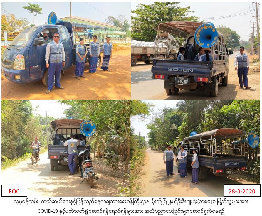 လူမှုဝန်ထမ်း၊ ကယ်ဆယ်ရေးနှင့် ပြန်လည်နေရာချထားရေးဝန်ကြီးဌာန၊ ဘေးအန္တရာယ်ဆိုင်ရာစီမံခန့်ခွဲမှုဦးစီးဌာန၊ မိုးညိုမြို့နယ်ဦးစီးမှူးရုံးမှ တာဝန်ရှိသူများသည် (၂၈-၃-၂၀၂၀) ရက်နေ့ နေ့လည် (၁၀:၃၀)မှ စတင်ပြီး မိုးညိုမြို့ပေါ်ရပ်ကွက်နှင့် မိုးညိုမြို့အနီးရှိ ကျေးရွာများသို့ လှည့်လည်ပြီး COVID -19 ကူးစက်ရောဂါနှင့်ပတ်သက်ပြီး ဆောင်ရန်/ ရှောင်ရန် တို့အား ရပ်ကွက်/ ကျေးရွာနေပြည်သူတို့အား အသိပညာပေးဟောပြော ဆောင်ရွက်ခဲ့ကြောင်း သတင်းရရှိပါသည်။