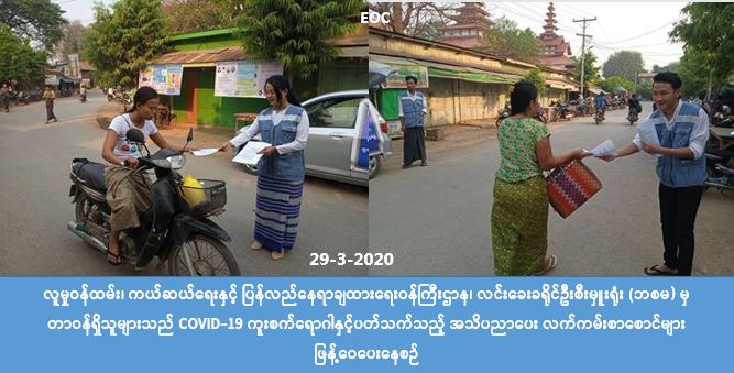 လူမှုဝန်ထမ်း၊ ကယ်ဆယ်ရေးနှင့် ပြန်လည်နေရာချထားရေးဝန်ကြီးဌာန၊ ဘေးအန္တရာယ်ဆိုင်ရာစီမံခန့်ခွဲမှုဦးစီးဌာန၊ လင်းခေးခရိုင်ဦးစီးမှူးရုံးမှတာဝန်ရှိသူများသည် (၂၉-၃-၂၀၂၀) ရက်နေ့ နံနက်ပိုင်း၌ လင်းခေးမြို့နယ်၊ မြို့မဈေးတွင် ကူးစက်မြန်ရောဂါ COVID-19 နှင့်ပတ်သက်၍ ကြိုတင်ကာကွယ်နိုင်ရေးအတွက် အသိပညာပေး ပန်ကြားခြင်းအား အသံချဲ့စက်ဖြင့် လည်းကောင်း၊ အသိပညာပေးပန်ကြားခြင်း လက်ကမ်းစာစောင်များကို အများပြည်သူများသို့ ဖြန့်ဝေ ခြင်းများ ဆောင်ရွက်ခဲ့ကြောင်း သိရှိရပါသည်။