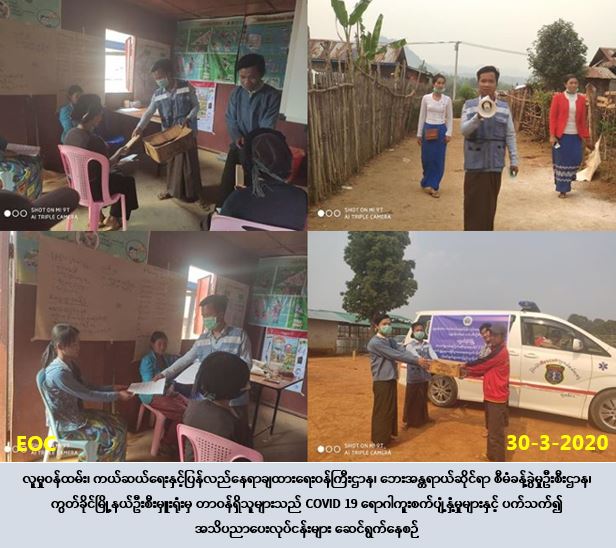 လူမှုဝန်ထမ်း၊ ကယ်ဆယ်ရေးနှင့် ပြန်လည်နေရာချထားရေးဝန်ကြီးဌာန ဘေးအန္တရာယ်ဆိုင်ရာ စီမံခန့်ခွဲမှုဦးစီးဌာန ကွတ်ခိုင်မြို့နယ်ဦးစီးမှူးရုံးမှ တာဝန်ရှိသူများသည် (၂၉- ၃- ၂၀၂၀ ) ရက်နေ့ တွင် ကွတ်ခိုင်မြို့နယ်အတွင်းရှိ IDPs စခန်းများမှ ကာလိုင် ၁ – ရပ်ကွက် ၆ နှင့်ပန်ကူ camp များမှအိမ်ထောင်စု (၂၂၇ )စု၊ လူဦးရေ( ၁၃၁၉ )ဦးအား Covid 19 ရောဂါ ကူးစက်ပျံ့နှံမှုများ မဖြစ်ပွားစေရန်အတွက် လိုက်နာဆောင်ရွက်ရန် ပြည်သူသို့ပန်ကြားချက်စာစောင်များ ဖြန့်ဝေ ခြင်း၊ လက်ကိုင်အသံချဲ့စက်ဖြင့် ဟောပြောဆွေးနွေးခြင်းနှင့် လက်ဆေးဆပ်ပြာများ ဝေငှခြင်း တို့ကို ကွင်းဆင်းဆောင်ရွက်ခဲ့ပါကြောင်း သတင်းရရှိပါသည်။