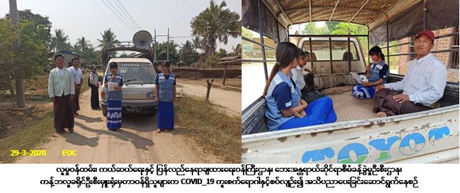 လူမှုဝန်ထမ်း၊ ကယ်ဆယ်ရေးနှင့် ပြန်လည်နေရာချထားရေးဝန်ကြီးဌာန၊ ဘေးအန္တရာယ်ဆိုင်ရာစီမံခန့်ခွဲမှုဉီးစီးဌာန၊ ကန့်ဘလူခရိုင်ဦးစီးမှူးရုံးမှတာဝန်ရှိသူများသည် (၂၉-၃-၂၀၂၀) ရက်နေ့၊ (၁၀:၃၀)နာရီအချိန်မှ စတင်၍ ကန့်ဘလူခရိုင်၊ ကန့်ဘလူမြို့နယ်၊ ဂါးထာကျေးရွာနှင့် စံပါယ်နံ့သာကျေးရွာများ၌ COVID-19 ကူးစက်ရောဂါနှင့်စပ်လျဉ်း၍ ကြိုတင်ကာကွယ်နိုင်ရန် ဆောင်ရန်/ရှောင်ရန်အချက်များကို အသိပညာပေးနှိုးဆော်ခဲ့ပါကြောင်း သတင်းရရှိိပါသည်။