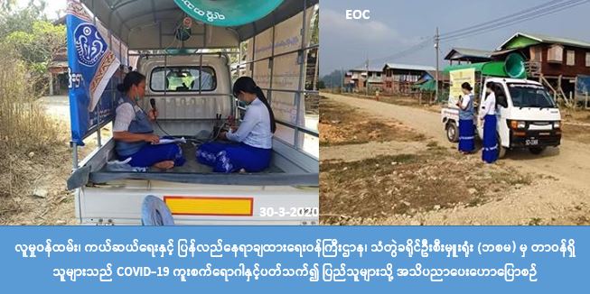 လူမှုဝန်ထမ်း၊ ကယ်ဆယ်ရေးနှင့် ပြန်လည်နေရာချထားရေးဝန်ကြီးဌာန၊ ဘေးအန္တရာယ်ဆိုင်ရာ စီမံ ခန့်ခွဲမှုဦးစီးဌာန၊ ရခိုင်ပြည်နယ်၊ သံတွဲခရိုင်ဦးစီးမှူးရုံးမှ တာဝန်ရှိသူများသည် ခရိုင်/ မြို့နယ်အထွေထွေ အုပ်ချုပ်ရေးဦးစီးဌာန၊ ရက္ခိတလူမှှုကူညီရေးအသင်းတို့နှင့် ပူးပေါင်း၍ (၃၀-၃-၂၀၂၀) ရက်နေ့၊ (၀၈:၀၀)နာရီမှ (၁၁:၃၀)နာရီချိန်အထိ သံတွဲမြို့၊ ဒါွရာဝတီမြို့သစ် ၊ အမှတ်(၇)ရပ်ကွက်နှင့်အမှတ် (၈) ရပ်ကွက်နှင့််အံတော်ကျေးရွာအတွင်း လှည့်လည်ပြီး ကိုရိုနာဗိုင်းရပ်စ်ရောဂါ (Covid-19 )ကာကွယ်၊ တားဆီး၊ ထိန်းချုပ်၊ ကုသရေးဆိုင်ရာပန်ကြား ချက်များအား ပြည်သူလူထုသို့ အသိပညာ ပေး လှည့်လည်ဟောပြောခြင်းဆောင်ရွက်ခဲ့ကြောင်း သိရှိရပါသည်။