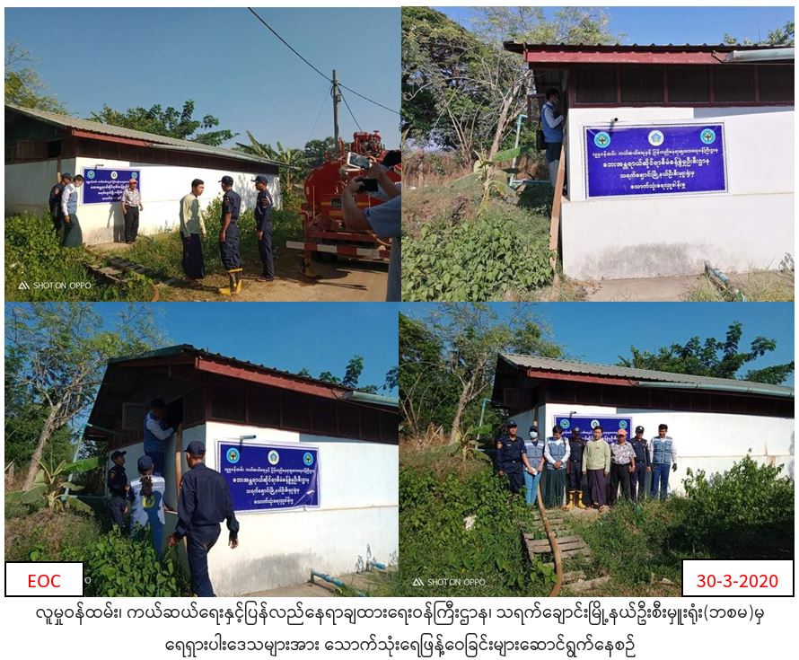 လူမှုဝန်ထမ်း၊ ကယ်ဆယ်ရေးနှင့်ပြန်လည်နေရာချထားရေးဝန်ကြီးဌာန၊ ဘေးအန္တရာယ်ဆိုင်ရာစီမံခန့်ခွဲမှုဦးစီးဌာန ၊ သရက်ချောင်းမြို့နယ်ဦးစီးမှူးရုံးမှ တာဝန်ရှိသူများသည် ရေရှားပါးနေသည့် သရက်ချောင်းမြို့နယ်၊ ဆင်ဖြူပြင်ကျေးရွာသို့ (၃၀.၃.၂၀၂၀)ရက်နေ့ (၈:ဝဝ)ချိန်၌ သောက်သုံးရေ(၃၆၀၀)ဂါလံအား မြို့နယ်သဘာဝဘေးကော်မတီနှင့်အတူ သွားရောက်လှူဒါန်းခဲ့ကြောင်း သတင်းရရှိပါသည်။