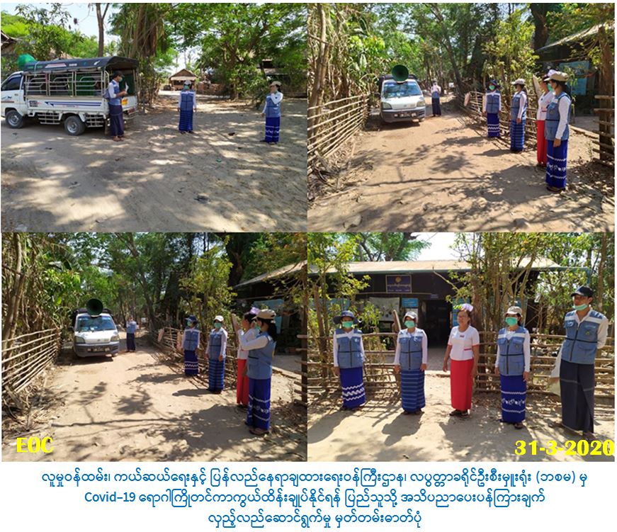 လူမှုဝန်ထမ်း၊ ကယ်ဆယ်ရေးနှင့် ပြန်လည်နေရာချထားရေးဝန်ကြီးဌာန၊ ဘေးအန္တရာယ်ဆိုင်ရာစီမံ ခန့်ခွဲမှုဉီးစီးဌာန၊ လပွတ္တာခရိုင်ဦးစီးမှူးရုံးမှ တာဝန်ရှိသူများသည် (၃၁-၃-၂၀၂၀) ရက်နေ့၊ နံနက် (၀၈:၃၀)နာရီမှ(၁၁:၁၅)နာရီအချိန်ထိလပွတ္တာမြို့နယ်၊ မောင်းဒီးကျေးရွာအုပ်စု၊ မောင်းဒီးကျေးရွာ၊ အစုလေးကျေးရွာ၊ ကျွန်းကလေးကျေးရွာများသို့ သွားရောက်၍ COVID-19 နှင့် ပတ်သက်၍ ဆောင်ရန်/ရှောင်ရန်များအား လိုက်နာဆောင်ရွက်သွားကြရန် အသံချဲ့စက်ဖြင့် လှည့်လည်၍ အသိပေးပြောကြားခဲ့ပါကြောင်း သတင်းရရှိပါသည်။