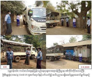 လူမှုဝန်ထမ်း၊ ကယ်ဆယ်ရေးနှင့် ပြန်လည်နေရာချထားရေးဝန်ကြီးဌာန၊ ဘေးအန္တရာယ်ဆိုင်ရာစီမံခန့်ခွဲမှုဦးစီးဌာန၊ စစ်ကိုင်းတိုင်းဒေသကြီးဦးစီးမှူးရုံး မှ တာဝန်ရှိသူများသည် ရပ်ကွက်/ကျေးရွာ အုပ်ချုပ်ရေးမှူးများ၊ ရပ်မိ/ရပ်ဖများနှင့်အတူ (၂-၄-၂၀၂၀) ရက်နေ့တွင် စစ်ကိုင်းတိုင်းဒေသကြီး၊ မုံရွာခရိုင်၊ မုံရွာမြို့နယ်၊ အလုံတပ်မြို့၊ စစ်ပင်ရပ်ကွက်၊ အောင်သာယာရပ်ကွက်၊ အမှတ် (၅)ရပ်ကွက်၊ မန္တလာရပ်ကွက်၊ ရွှေပြည်အေးရပ်ကွက်၊ ခံတောရပ်ကွက်၊ ညောင်ခြေထောက်ရပ်ကွက်၊ ခဝဲကျင်းကျေးရွာနှင့် ကောရဗျ ကျေးရွာများတွင် Covid-19ရောဂါကူးစက်ပျံ့နှံမှုများမဖြစ်ပွားစေနိုင်ရန်အတွက် အများပြည်သူများ အလွယ်တကူသိရှိ လိုက်နာဆောင်ရွက်ရန်များကို အသိပေးဆောင်ရွက်ခြင်းလုပ်ငန်းများကို ဆောင်ရွက်ခဲ့ပါကြောင်း သတင်းရရှိပါသည်။