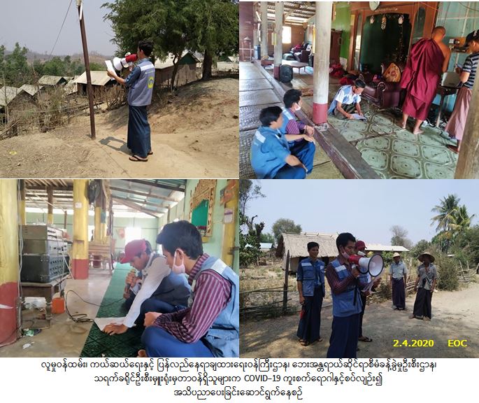 လူမှုဝန်ထမ်း၊ ကယ်ဆယ်ရေးနှင့် ပြန်လည်နေရာချထားရေးဝန်ကြီးဌာန၊ ဘေးအန္တရာယ်ဆိုင်ရာစီမံခန့်ခွဲမှုဦးစီး ဌာန၊ သရက်ခရိုင်ဦးစီးမှူးရုံးမှတာဝန်ရှိသူများသည် (၂-၄-၂၀၂၀) ရက်နေ့တွင် သရက်မြို့နယ်အတွင်းရှိ စခန်းကြီးကျေးရွာ၊ ကွမ်းအုံကျေးရွာနှင့် ရေဗွက်ကျေးရွာတို့၌ COVID-19 ကူးစက်ရောဂါနှင့်စပ်လျဉ်း၍ ဆောင်ရန်/ရှောင်ရန်အချက်များကို အသိပညာပေးနှိုးဆော်ခဲ့ပါကြောင်း သတင်းရရှိပါသည်။