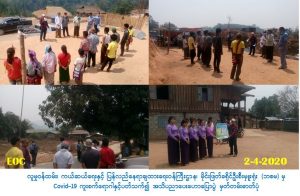 လူမှုဝန်ထမ်း၊ ကယ်ဆယ်ရေးနှင့် ပြန်လည်နေရာချထားရေးဝန်ကြီးဌာန၊ ဘေးအန္တရာယ်ဆိုင်ရာစီမံ ခန့်ခွဲမှုဉီးစီးဌာန၊ မိုင်းဖြတ်မြို့နယ်ဦးစီးမှူးရုံးမှ တာဝန် ရှိသူများသည် (၂-၄-၂၀၂၀) ရက်နေ့၊ နံနက် (၁၀)နာရီမှစ၍ မိုင်းဖြတ်မြို့နယ်အုပ်ချုပ်ရေးမှူး၊ မြို့နယ်ရဲမှူးနှင့်အဖွဲ့၊ မြို့နယ်အမျိုးသမီးရေးရာအဖွဲ့၊ မြို့နယ်ဌာနဆိုင်ရာတို့ဖြင့်ပူးပေါင်း၍ မိုင်းဖြတ်မြို့နယ်၊ ဘူရှီးကျေးရွာ၊ မက်မွန်ကြယ်ကျေးရွာနှင့် နမ့်ဟိုင်းကျေးရွာတို့တွင် COVID-19 ရောဂါကူးစက်ပျံ့နှံ့မှုများမဖြစ်ပွားစေရန်အတွက် လိုက်နာရန်၊ ဆောင်ရွက်ရန်များ၊ ပြည်သူသို့ ပန်ကြားချက်လက်ကမ်းစာစောင်များ ဖြန့်ဝေခြင်း၊ မြန်မာ၊ လားဟူ၊ ရှမ်းဘာသာစကားတို့ဖြင့် အသိပညာပေးဟောပြောမှုများ ဆောင်ရွက်ခဲ့ပါကြောင်း သတင်းရရှိပါ သည်။