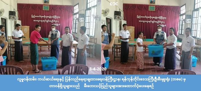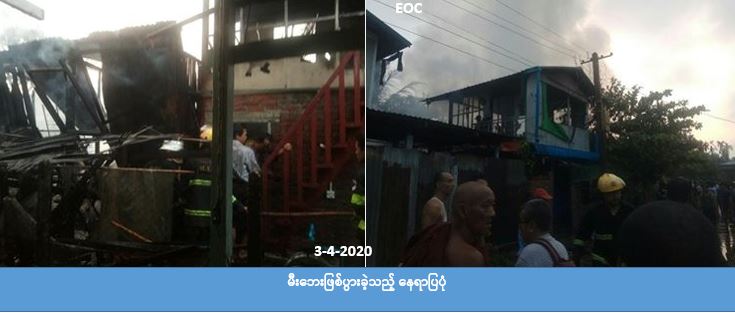 ရန်ကုန်တိုင်းဒေသကြီး၊ အင်းစိန်မြို့နယ်၊ တောင်သူကုန်းရပ်ကွက်တွင် (၃-၄-၂၀၂၀)ရက်နေ့၌ မီးလောင်မှုဖြစ်ပွား ခဲ့ရာ နေအိမ်(၃)လုံးမီးလောင်ဆုံးရှုံးခဲ့ပြီး၊နေအိမ်(၁)လုံးတစ်စိတ်တစ်ပိုင်းပျက်စီးဆုံးရှုံးခဲ့ရာ၊ အိမ်ထောင်စု(၄)စုမှ လူဦးရေ(၁၅)ဦးတို့ မီးဘေးသင့်ခဲ့ရာ၊ လူမှုဝန်ထမ်း၊ ကယ်ဆယ်ရေးနှင့်ပြန်လည်နေရာချထားရေးဝန်ကြီးဌာန၊ ဘေးအန္တရာယ်ဆိုင်ရာစီမံခန့်ခွဲမှုဦးစီးဌာန၊ ရန်ကုန်တိုင်းဒေသကြီးဦးစီးမှူးရုံးမှ မီးဘေးသင့်အိမ်ခြေ(၄)လုံး အတွက် အိမ်ဆောက်ပစ္စည်းဖိုးထောက်ပံ့ငွေကျပ် (၇၀၀,၀၀ဝ) ကျပ်၊လူဦးရေ(၁၅)ဦးအတွက်ဆန်ရိက္ခာဖိုး ထောက်ပံ့ငွေကျပ် (၃၁,၅၀ဝ) ကျပ်နှင့် ကယ်ဆယ်ရေးပစ္စည်း(၁၆)မျိုး(၄)အိမ်ထောင်စုစာတို့အား (၃-၄-၂၀၂၀) ရက်နေ့တွင် အထွေထွေအုပ်ချုပ်ရေးဦးစီးဌာနမှ တာဝန်ရှိသူများ၊ အင်းစိန်မြို့နယ်လွှတ်တော်ကိုယ်စားလှယ် များနှင့်အတူ ဘေးသင့်ပြည်သူများထံသို့ သွားရောက်၍ ထောက်ပံ့ပေးခဲ့ကြောင်း သိရှိရပါသည်။