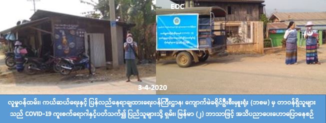 လူမှုဝန်ထမ်း၊ ကယ်ဆယ်ရေးနှင့် ပြန်လည်နေရာချထားရေးဝန်ကြီးဌာန၊ ဘေးအန္တရာယ်ဆိုင်ရာ စီမံခန့်ခွဲမှုဦးစီး ဌာန၊ ကျောက်မဲခရိုင်ဦးစီးမှူးရုံးမှ တာဝန်ရှိသူများသည် (၃-၄-၂၀၂၀) ရက်နေ့တွင် ကျောက်မဲမြို့၊ ကမ်မိန်း၊ ပေါက်ကုန်း၊ ဇောတိကုန်းနှင့် မုန်လာခြံကျေးရွာများတွင် COVID-19 ရောဂါကူးစက်ပျံ့နှံမှုများမဖြစ်ပွားစေရန် အတွက် ဆောင်ရန်၊ ရှောင်ရန်များကို မြန်မာ၊ ရှမ်း (၂) ဘာသာဖြင့် အသိပေးဟောပြောဆောင်ရွက်ခဲ့ကြောင်း သိရှိရပါသည်။