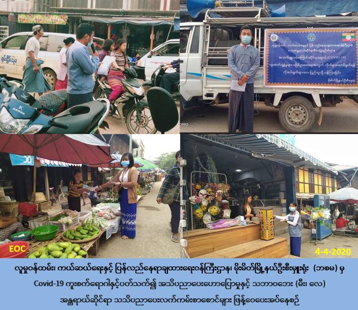 လူမှုဝန်ထမ်း၊ ကယ်ဆယ်ရေးနှင့်ပြန်လည်နေရာချထားရေးဝန်ကြီးဌာန၊ ဘေးအန္တရာယ်ဆိုင်ရာ စီမံခန့်ခွဲမှုဦးစီးဌာန၊ မိုးမိတ်မြို့နယ်ဦးစီးမှူးရုံးမှ တာဝန်ရှိသူများသည် လူမှုဝန်ထမ်းဦးစီးဌာန၊ မီးသတ်တပ်ဖွဲ့တို့နှင့် ပူးပေါင်း၍ (၄-၄-၂၀၂၀) ရက်နေ့၊ (၀၆:၃၀) နာရီမှ (၀၈:၃၀) နာရီအထိ မိုးမိတ်မြို့၊ မြို့မဈေး၊ မြောက်ပိုင်းရပ်ကွက်နှင့် လက်ခုတ်တန်းရပ်ကွက်တို့တွင် အသက်ရှူလမ်းကြောင်းဆိုင်ရာရောဂါ (COVID-19) ကူးစက်ပျံ့နှံ့မှုများမဖြစ်စေရေးအတွက် လိုက်နာဆောင်ရွက်ရန်လိုအပ်ချက်များအား ပြည်သူသို့ ပန်ကြားခြင်းအစီအစဉ်ကို ဆောင်ရွက်ခဲ့ရာ အသိပညာပေးလက်ကမ်းစာစောင်များဖြန့်ဝေခြင်းနှင့် COVID-19 အပြင် ပူပြင်းတဲ့ရာသီဖြစ်သည့်အတွက် မီးဘေးအန္တရာယ်နှင့် လေပြင်းဘေးအန္တရာယ်ကိုလည်း သတိထားဆောင်ရွက်ကြဖို့ တိုက်တွန်းနှိုးဆော်ခဲ့ပြီး မီးဘေးနှင့် လေပြင်းဘေး လက်ကမ်း စာစောင်များကိုလည်း ဖြန့်ဝေပေးခဲ့ပါကြောင်း သတင်းရရှိပါသည်။