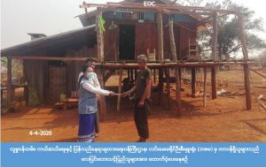 လူမှုဝန်ထမ်း၊ ကယ်ဆယ်ရေးနှင်ြ့ပန်လည်နေရာချထားရေးဝန်ကြီးဌာန၊ ဘေးအန္တရာယ်ဆိုင်ရာစီမံခန့်ခွဲမှုဦးစီးဌာန၊ လင်းခေးခရိုင်ဦးစီးမှူးရုံးမှတာဝန်ရှိသူများသည် လင်းခေးခရိုင်၊ မိုးနြဲမို့နယ်၊ နောင်လိုင်ကျေးရွာအုပ်စု၊ ခဲတောင်ကြီး ကျေးရွာတွင် (၂-၄-၂၀၂၀) ရက်နေ့တွင် ဖြစ်ပွားသော လေပြင်းဘေးကြောင့် ဘေးသင့်အိမ်ထောင်စု (၁)စုအတွက် အိမ်ဆောက်ပစ္စည်းဖိုး (၉၀,၀၀၀) ကျပ်အား (၄-၄-၂၀၂၀)ရက်နေ့တွင် ကွင်းဆင်းထောက်ပံ့ပေးခဲ့ကြောင်း သိရှိရပါ သည်။