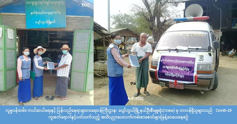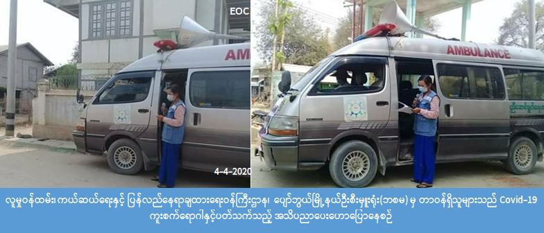 လူမှုဝန်ထမ်း၊ကယ်ဆယ်ရေး နှင့် ပြန်လည်နေရာချထားရေးဝန်ကြီးဌာန၊ ဘေးအန္တရာယ်ဆိုင်ရာ စီမံခန့်ခွဲမှုဉီးစီးဌာန၊ ပျော်ဘွယ်မြို့နယ်ဦးစီးမှူးရုံး မှတာဝန်ရှိသူများ၊ အလင်းရောင်ပရဟိတအသင်း၊ရပ်ကွက်/ကျေးရွာ အုပ်ချုပ်ရေးမှူးများ နှင့် ပူးပေါင်း၍( ၄-၄-၂၀၂၀)ရက်နေ့ (၀၉:၀၀)နာရီမှ(၂၀:၀၀)နာရီအထိ ပျော်ဘွယ်မြို့နယ် အတွင်းရှိ ရပ်ကွက်/ကျေးရွာအုပ်စု(၁၄)စု၊ရပ်ကွက်/ကျေးရွာပေါင်း(၅၀)ရွာတို့အား Covid-19 ကူးစက်ရောဂါ နှင့် ပတ်သက်၍ အများပြည်သူ အလွယ်တကူ သိရှိလိုက်နာ ဆောင်ရွက်နိုင်ရေးအတွက် ဆောင်ရန်/ရှောင်ရန်အချက် များကို အသံချဲ့စက်ဖြင့် လှည့်လည်၍ အသိပညာပေးဟောပြောဆောင်ရွက်ခဲ့ကြောင်း သိရှိရပါသည်။